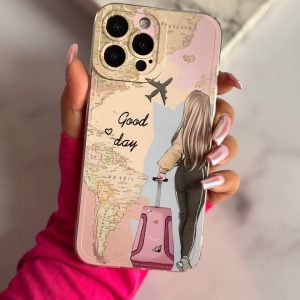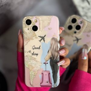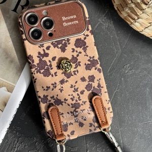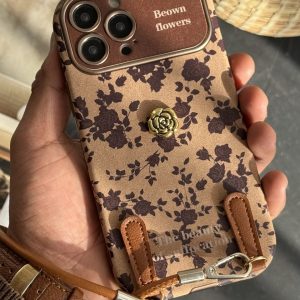 قاب موبایل ( آیفون ) گل رز فلورا قهوه ای + بندست چرمی