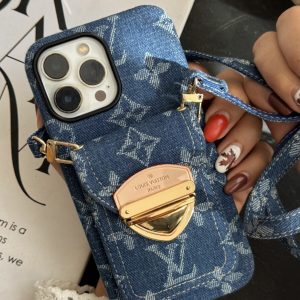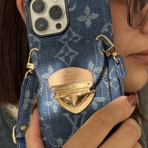 قاب موبایل آیفون لویی ویتون جین استایل جاکارتی دار + بندست