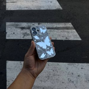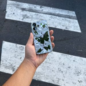 قاب موبایل آیفون براش پروانه طلایی + بندست پاپیون