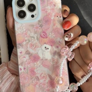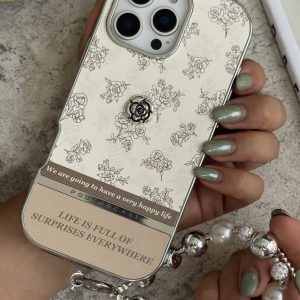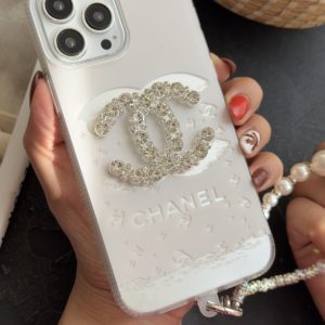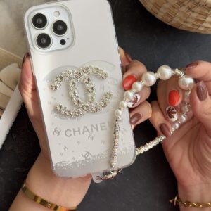 قاب موبایل آیفون شنل گل اسپرینگ تایم نگین مروارید + بند ست
