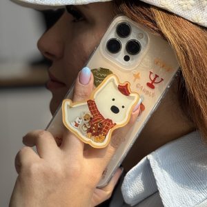 قاب موبایل آیفون کندل کریسمس سگ پاپی + پاپسوکت متحرک