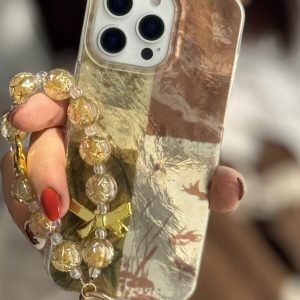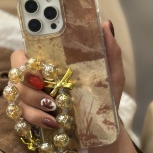 قاب موبایل آیفون براش پروانه طلایی + بندست پاپیون