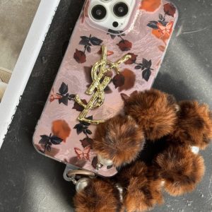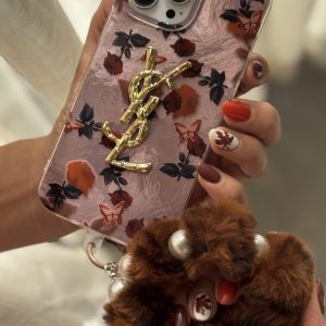 قاب موبایل ( آیفون – سامسونگ ) سن لورن شکوفه گل رز + آویز گل رز