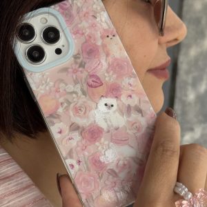 قاب موبایل آیفون کت گاردن گربه سفید صورتی ( بدون بند )