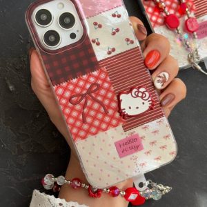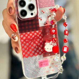 قاب موبایل آیفون کیتی چری آلبالویی پاپیون دار + بندست