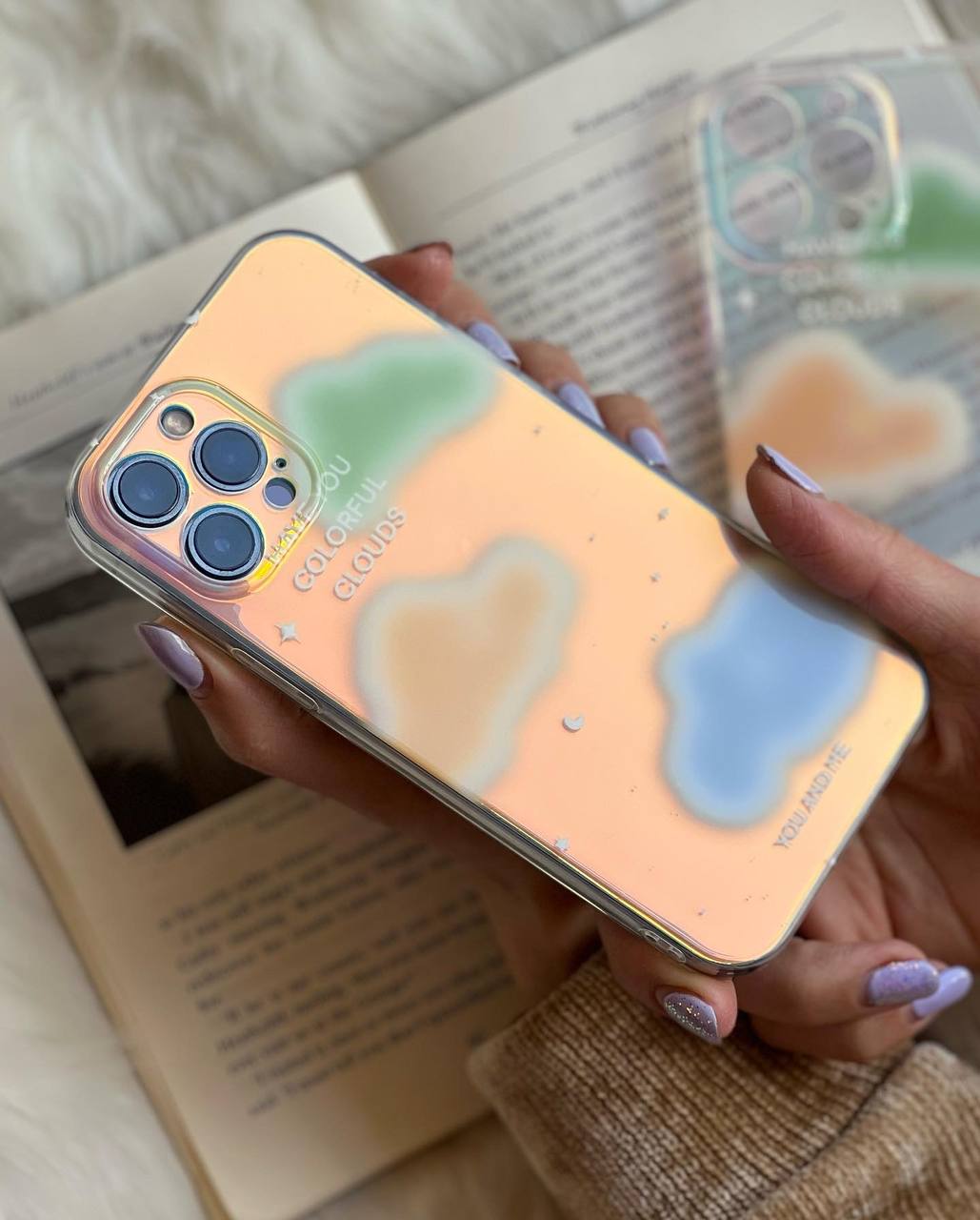 قاب موبایل آیفون ابرهای رنگی رنگی محافظ لنزدار