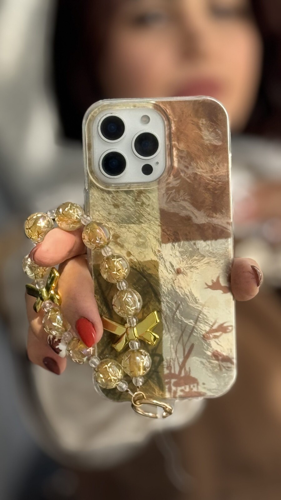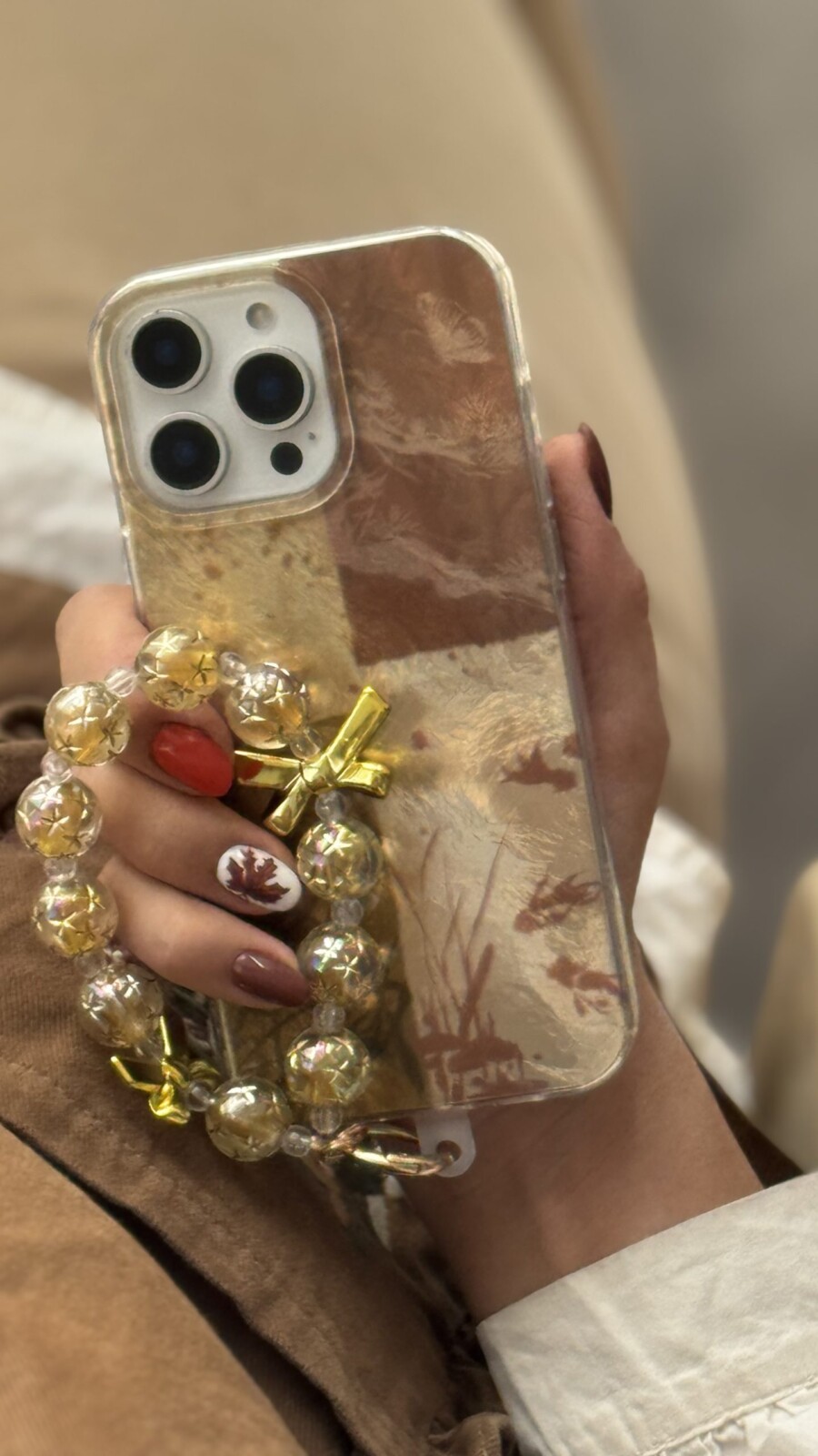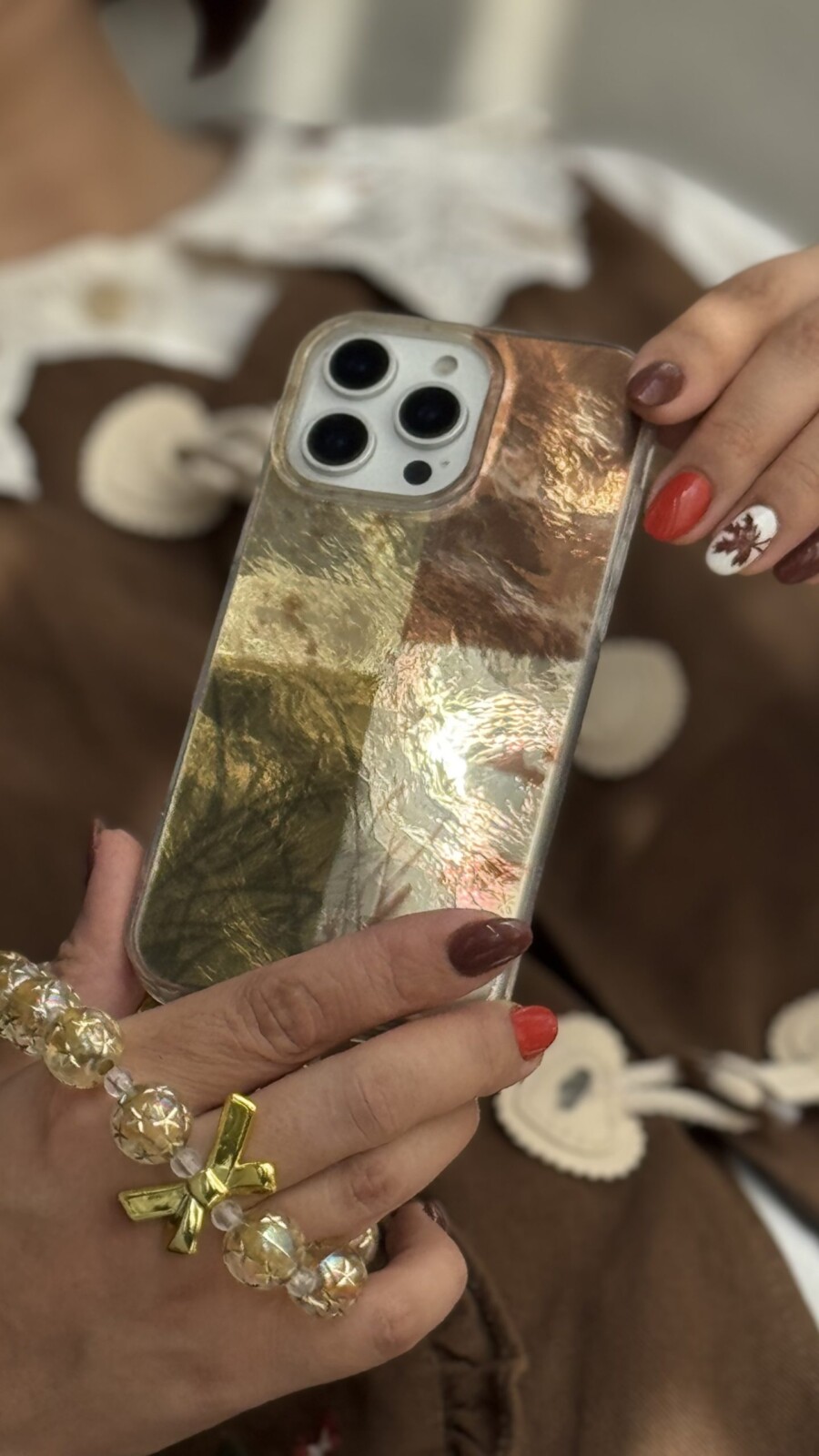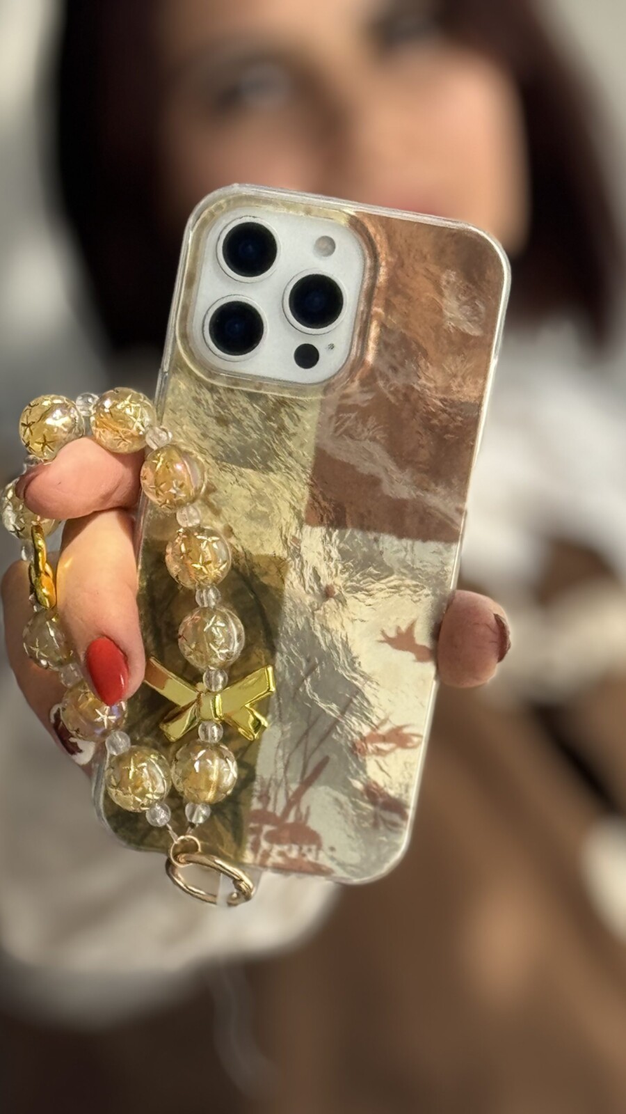 قاب موبایل آیفون براش پروانه طلایی + بندست پاپیون؛ ظرافتی درخشان در دستان شما