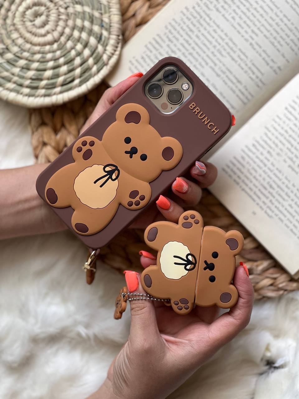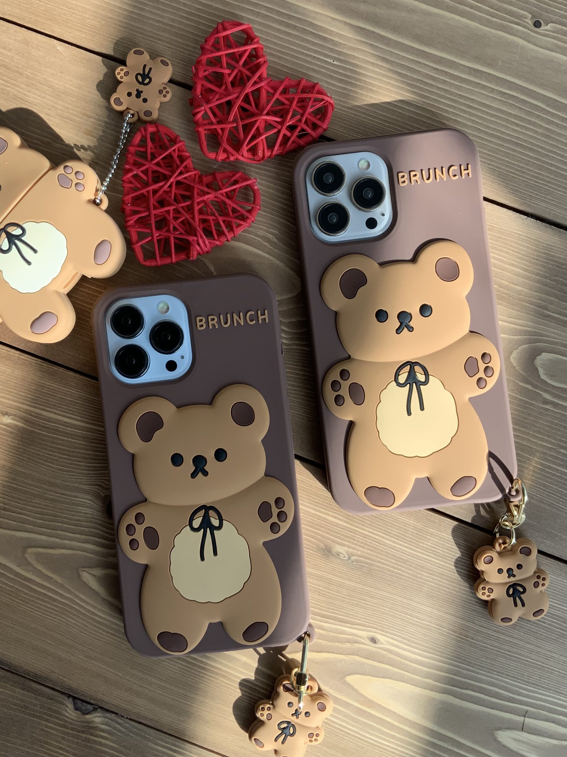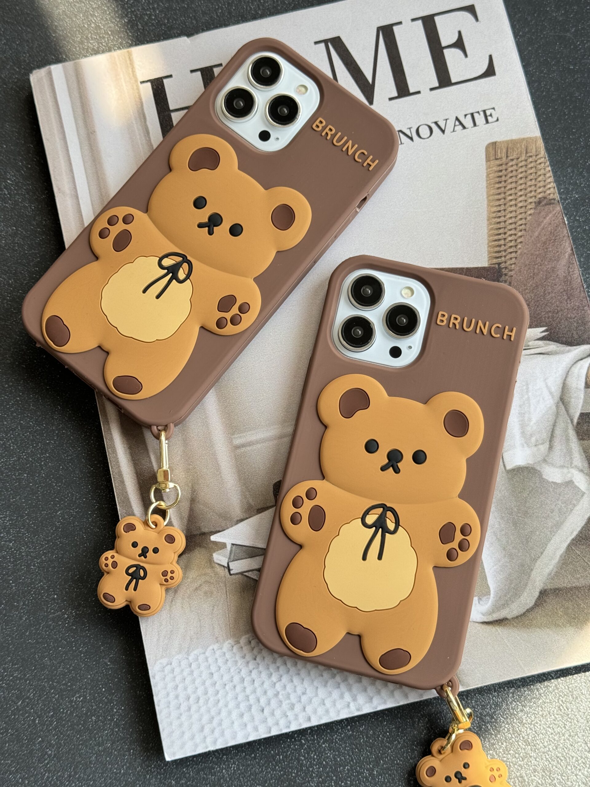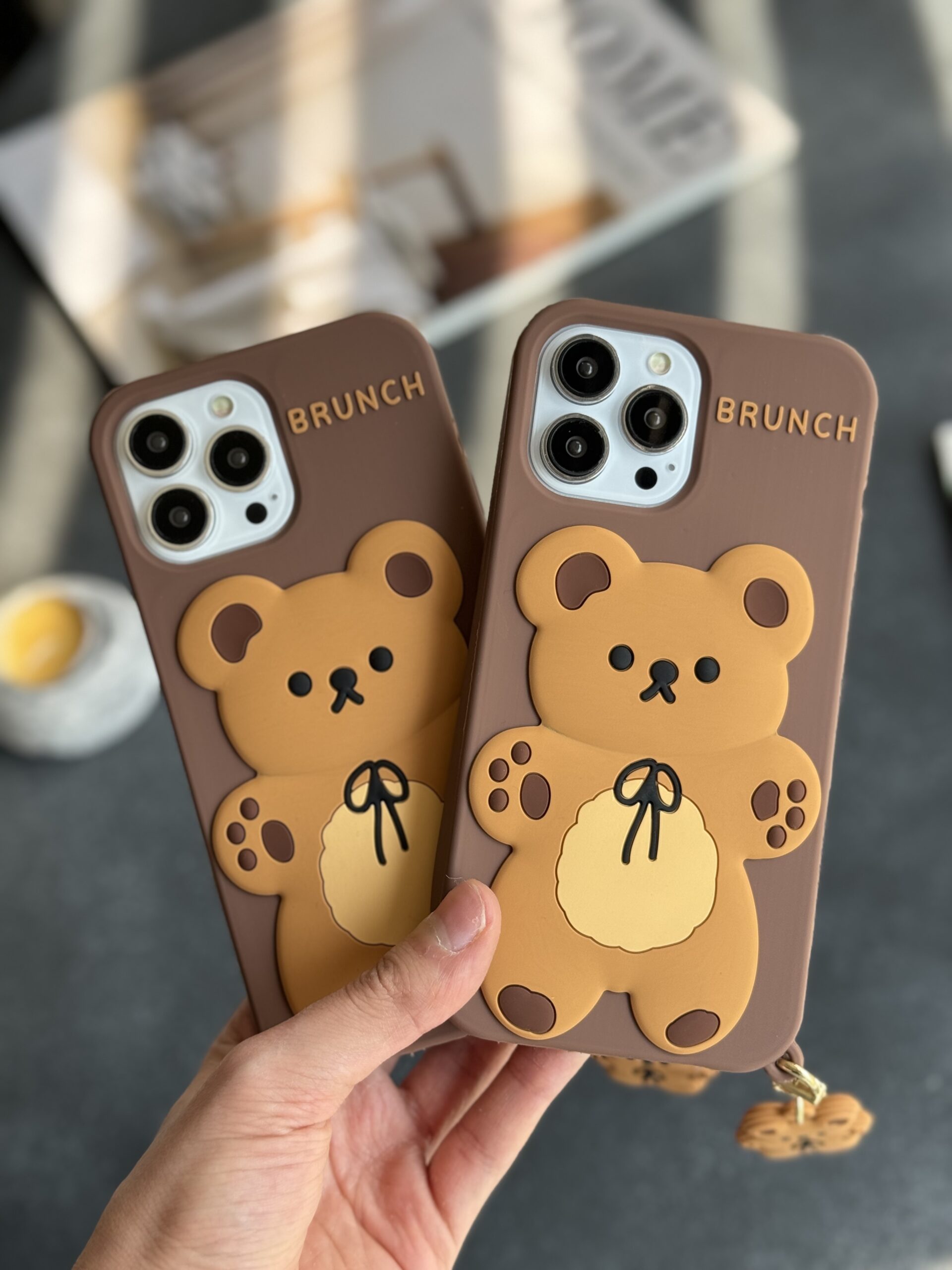 قاب موبایل آیفون خرس قهوه ای مینیمال سیلیکونی + آویز