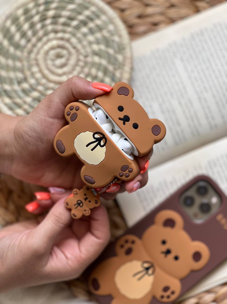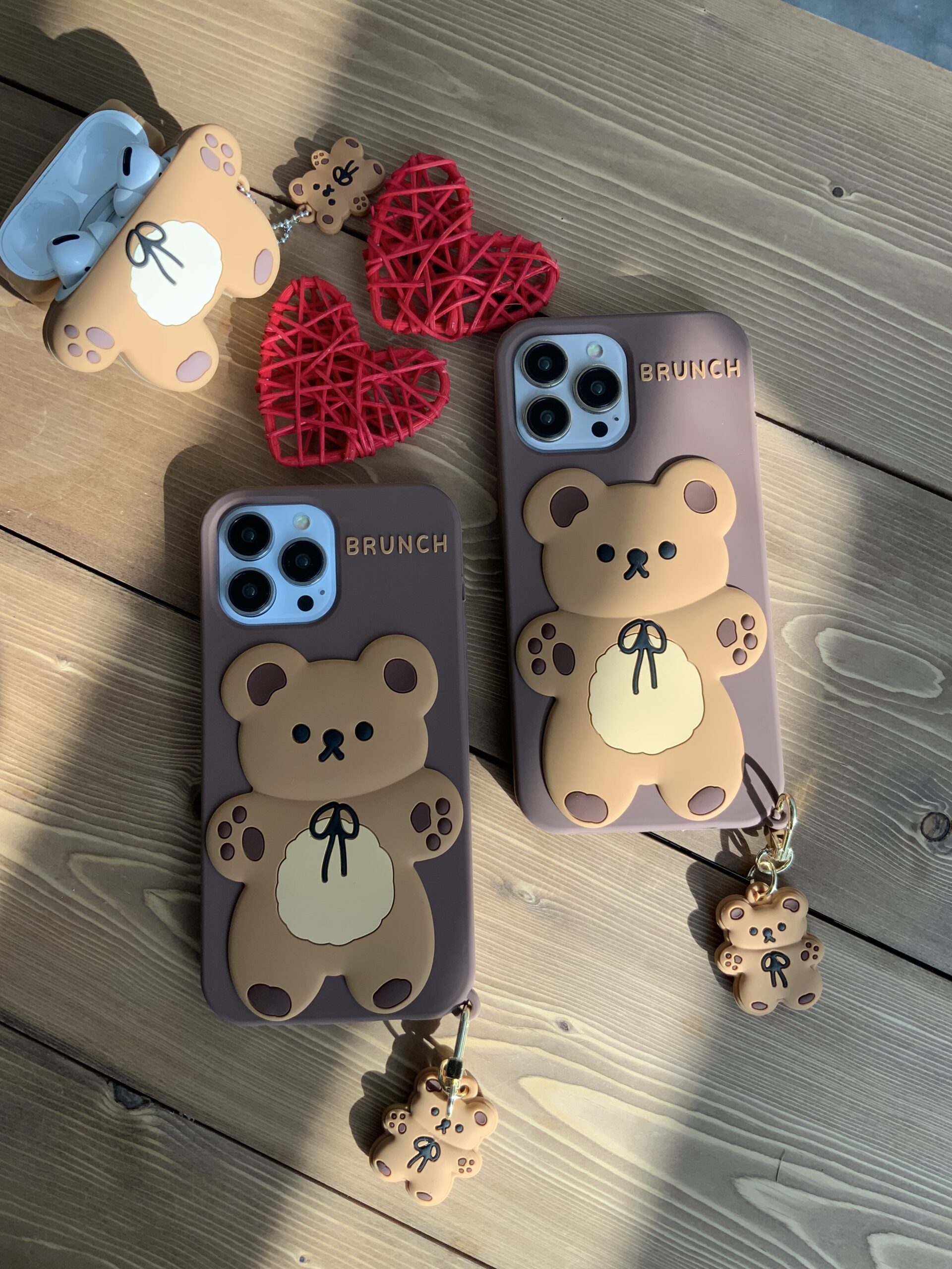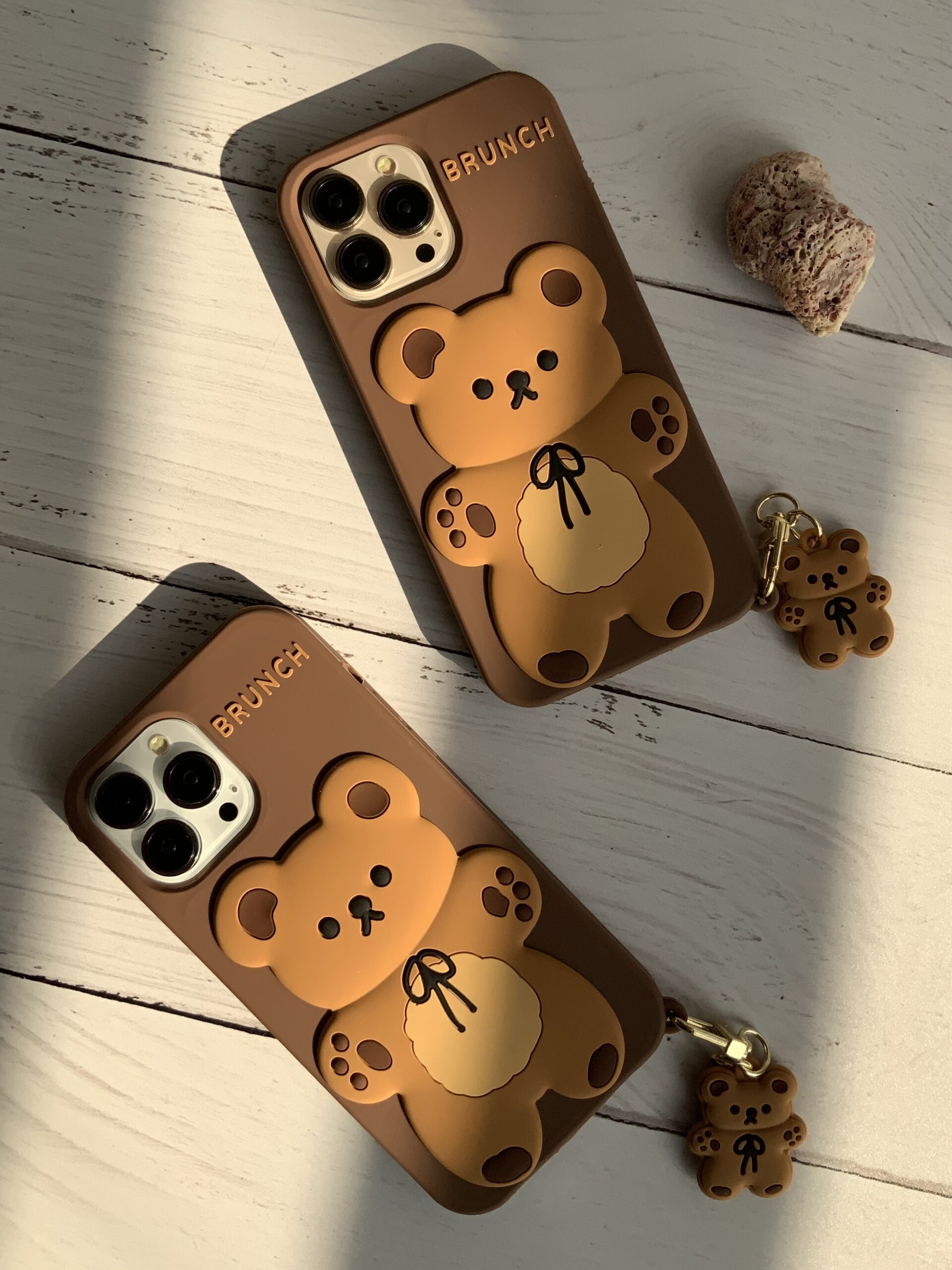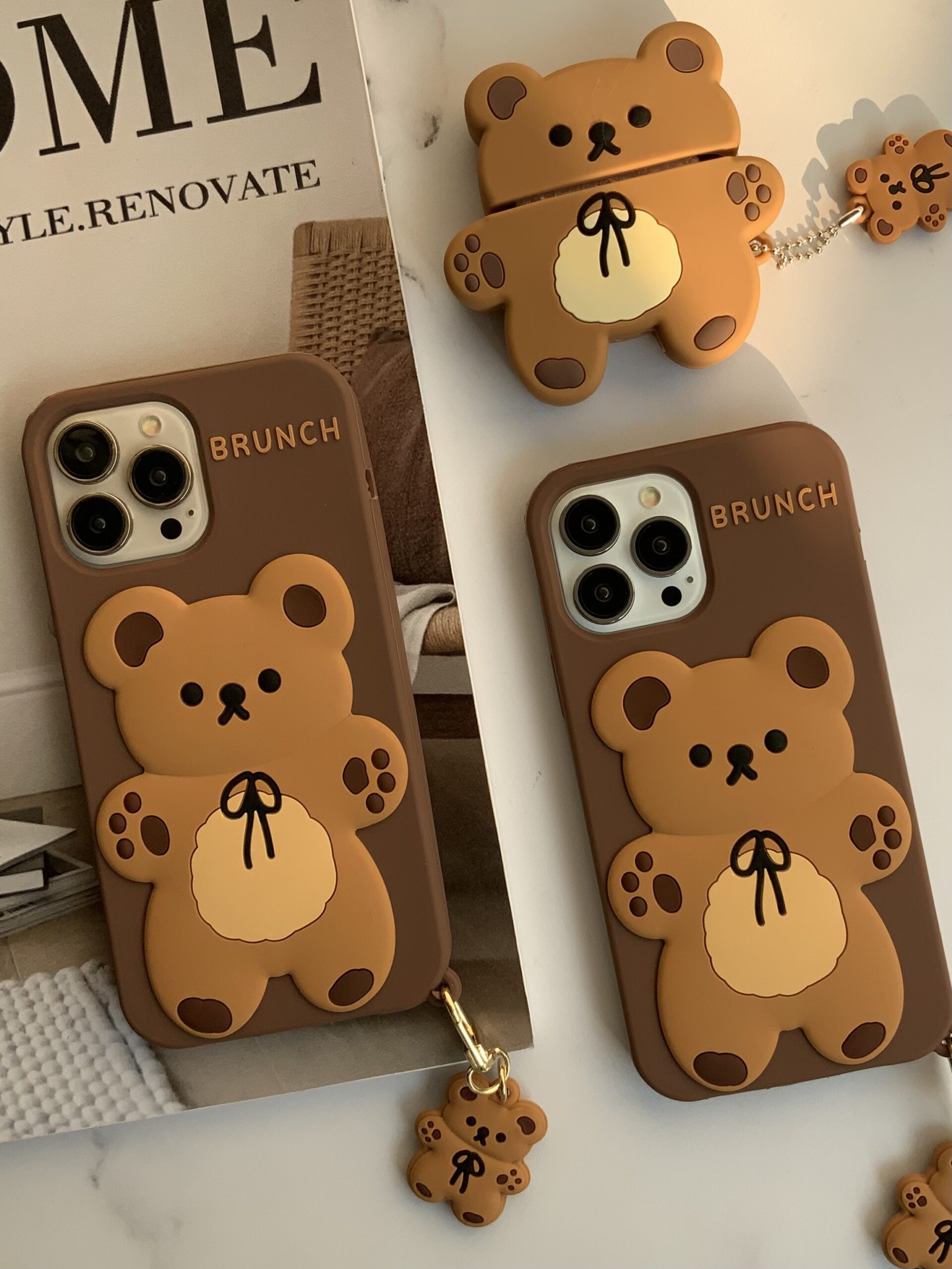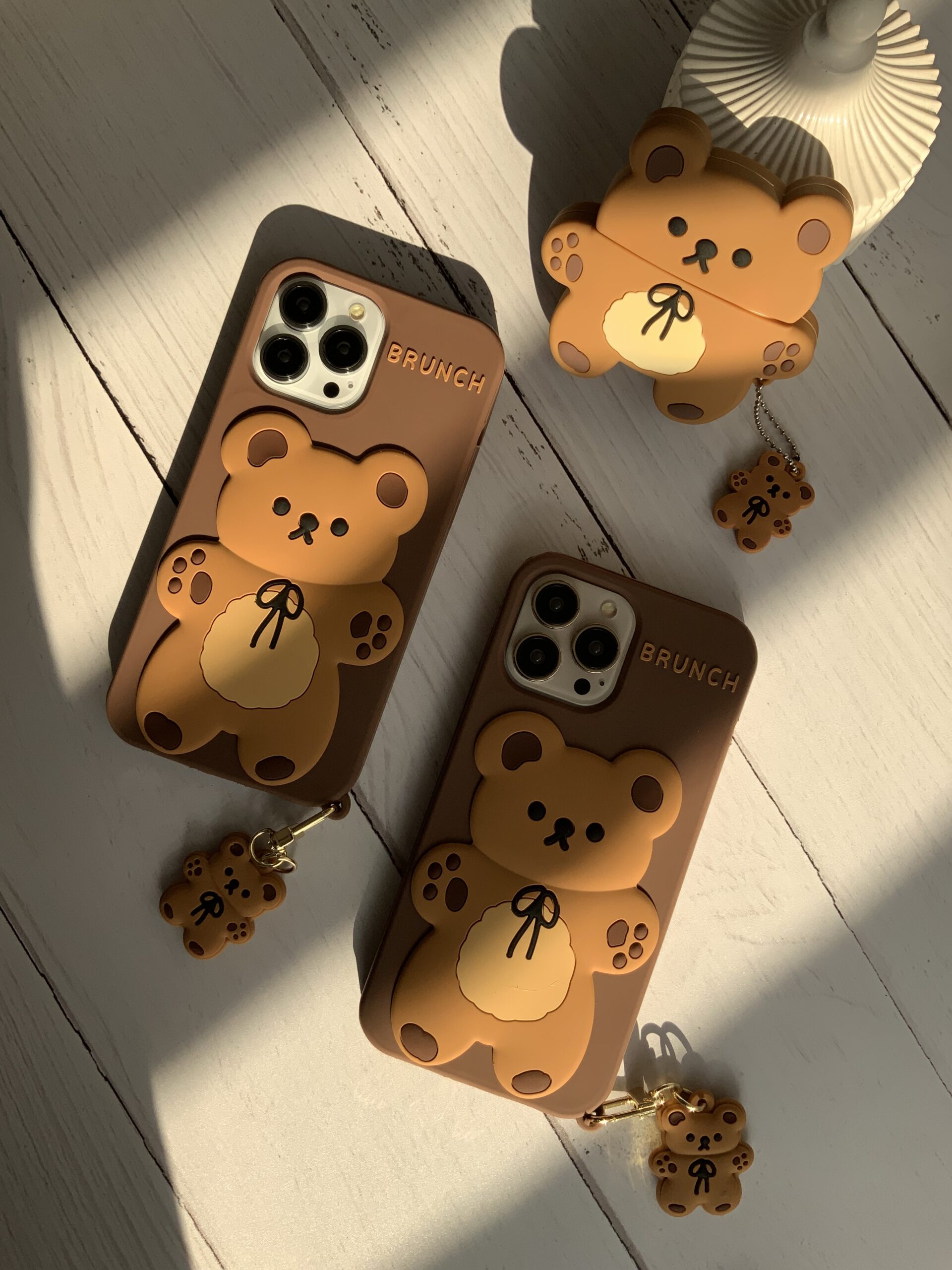 قاب موبایل آیفون خرس قهوه ای مینیمال سیلیکونی + آویز