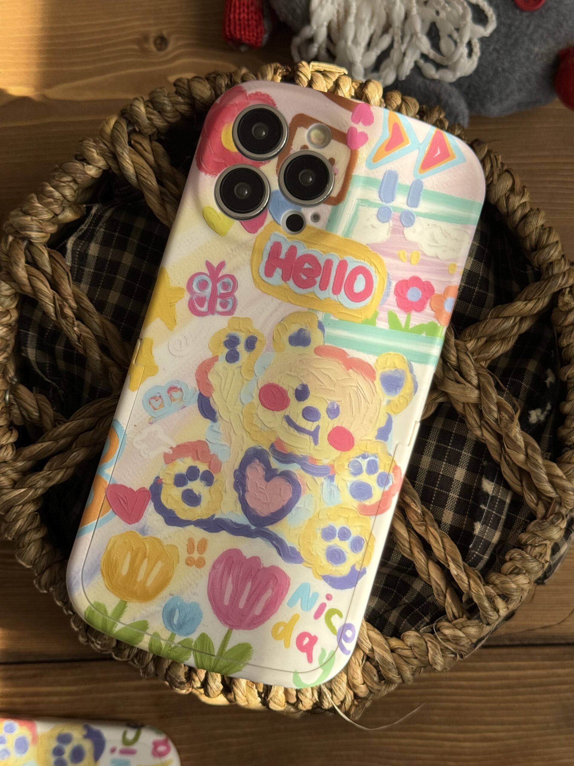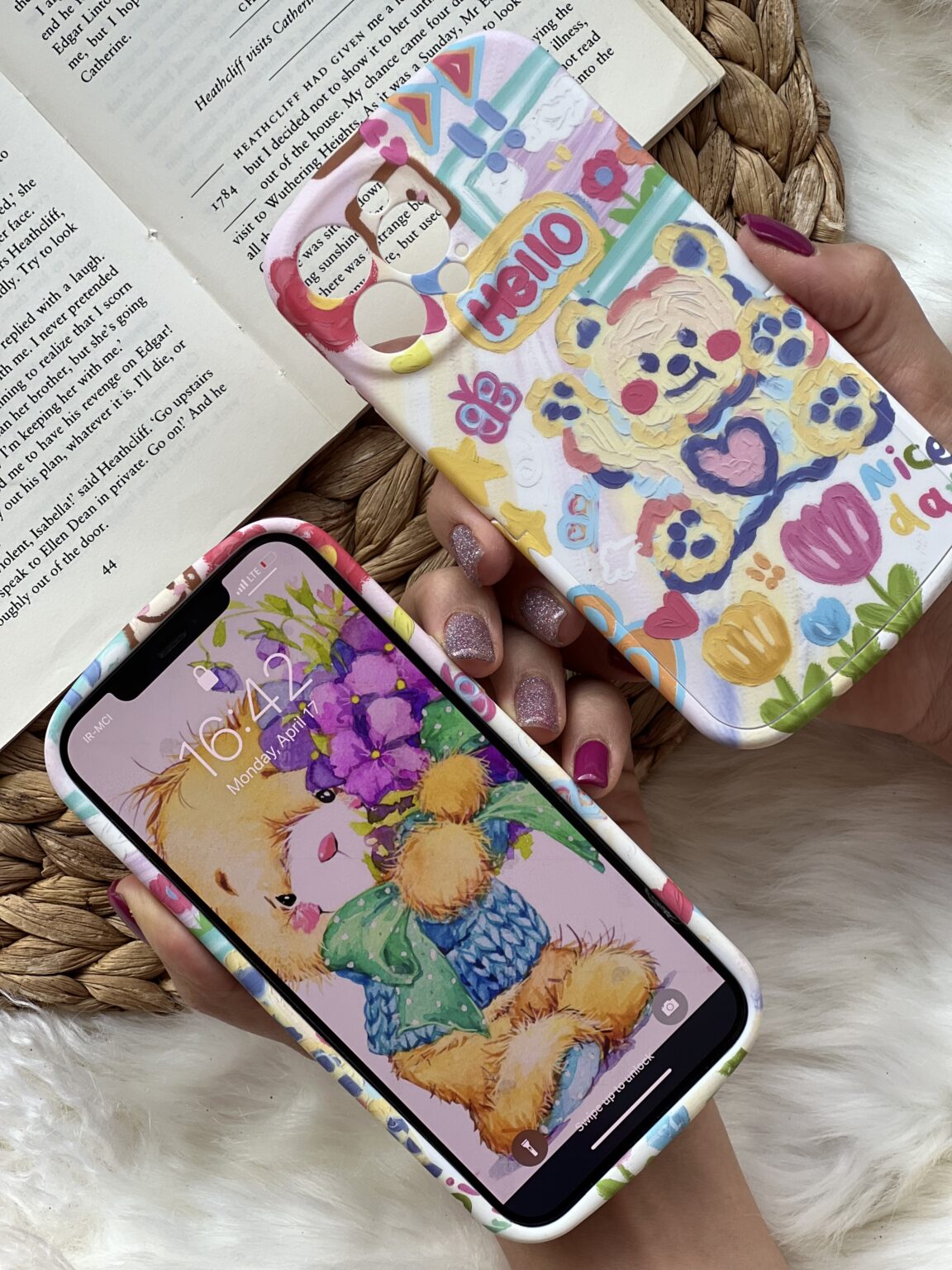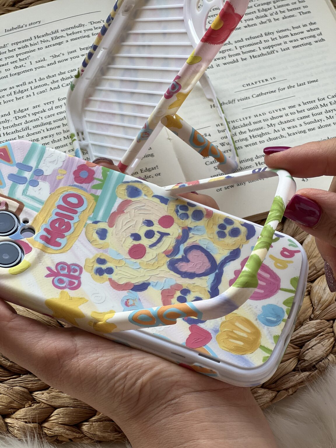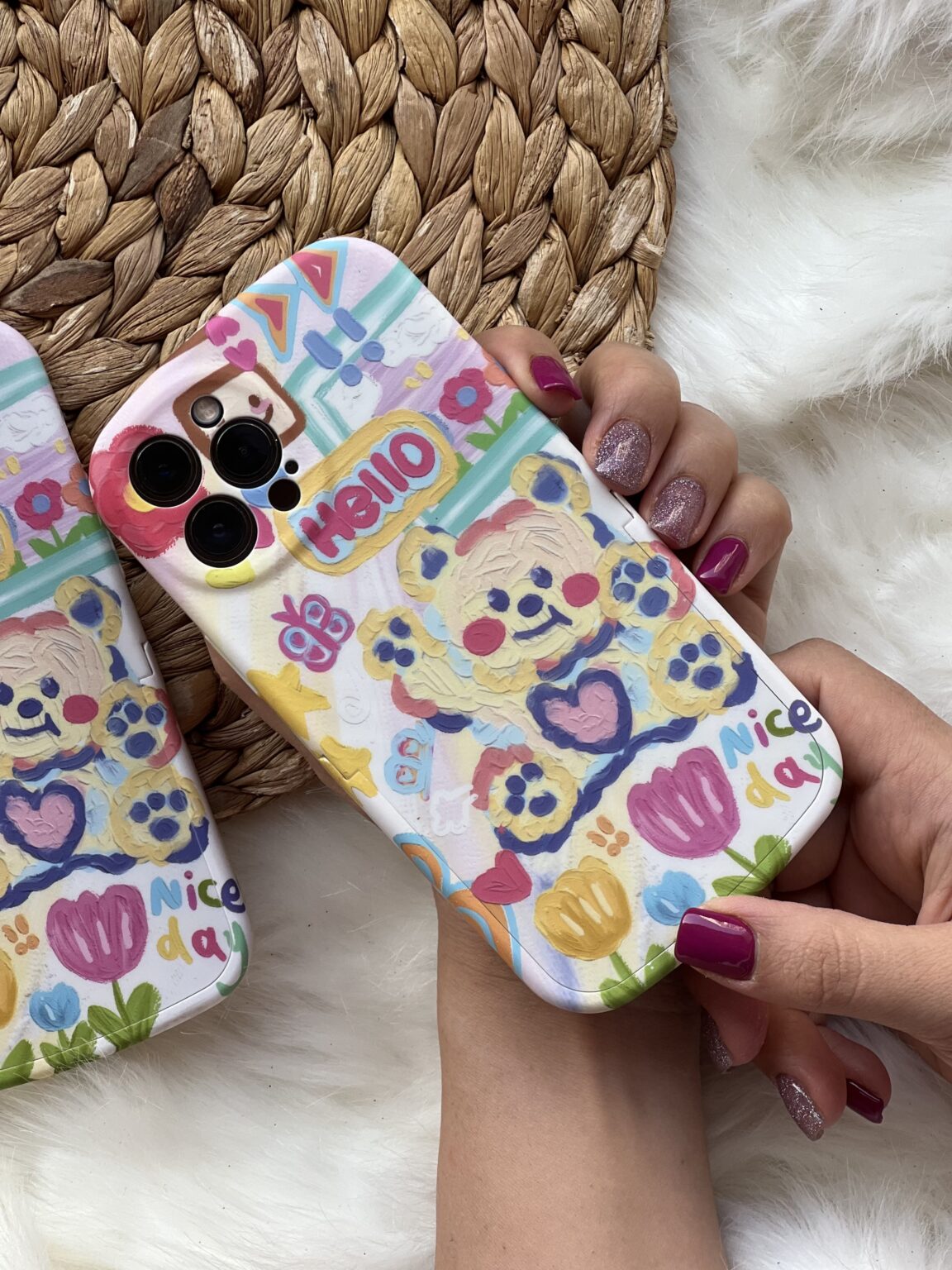 قاب موبایل آیفون خرس نقاشی آبرنگی پایه استند دار
