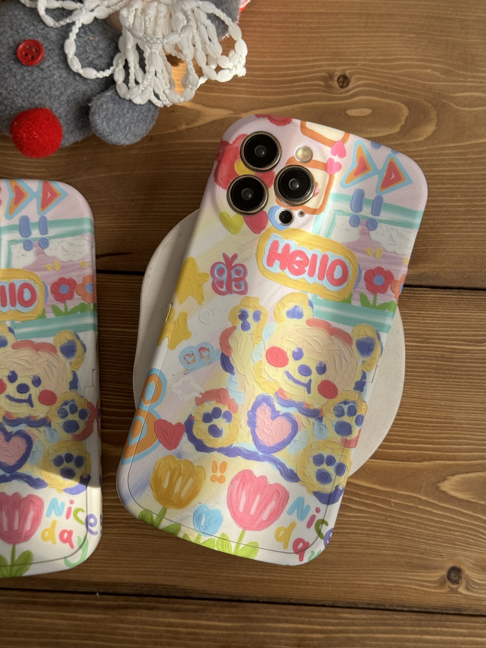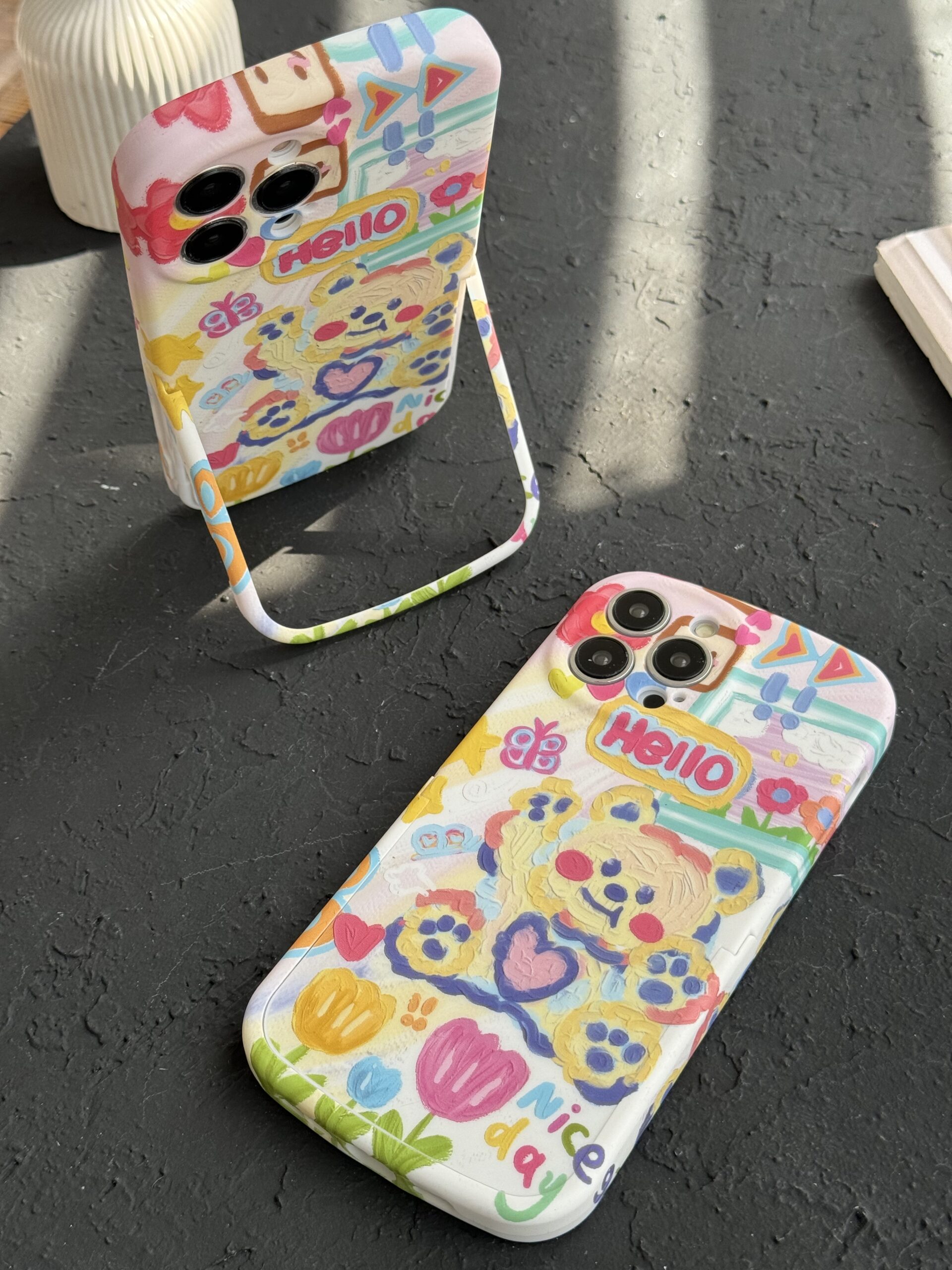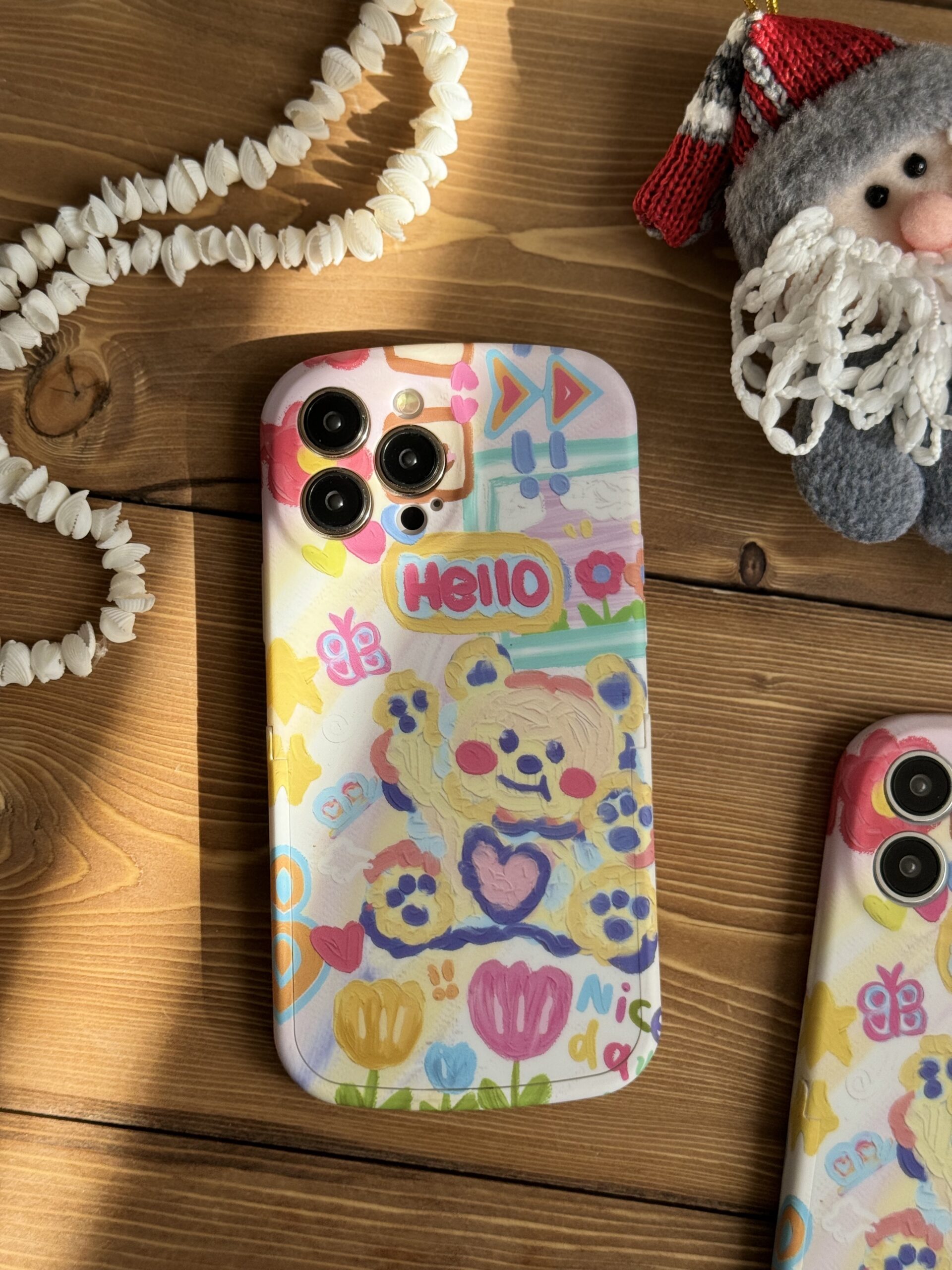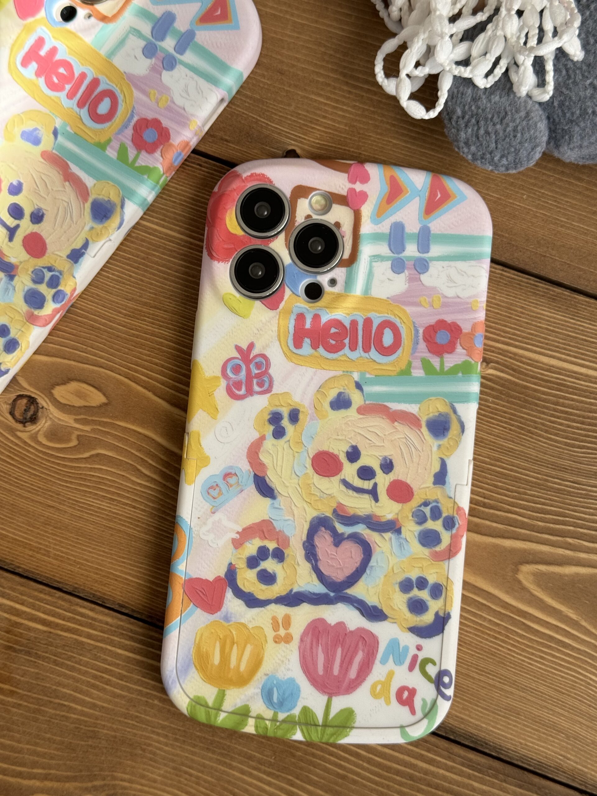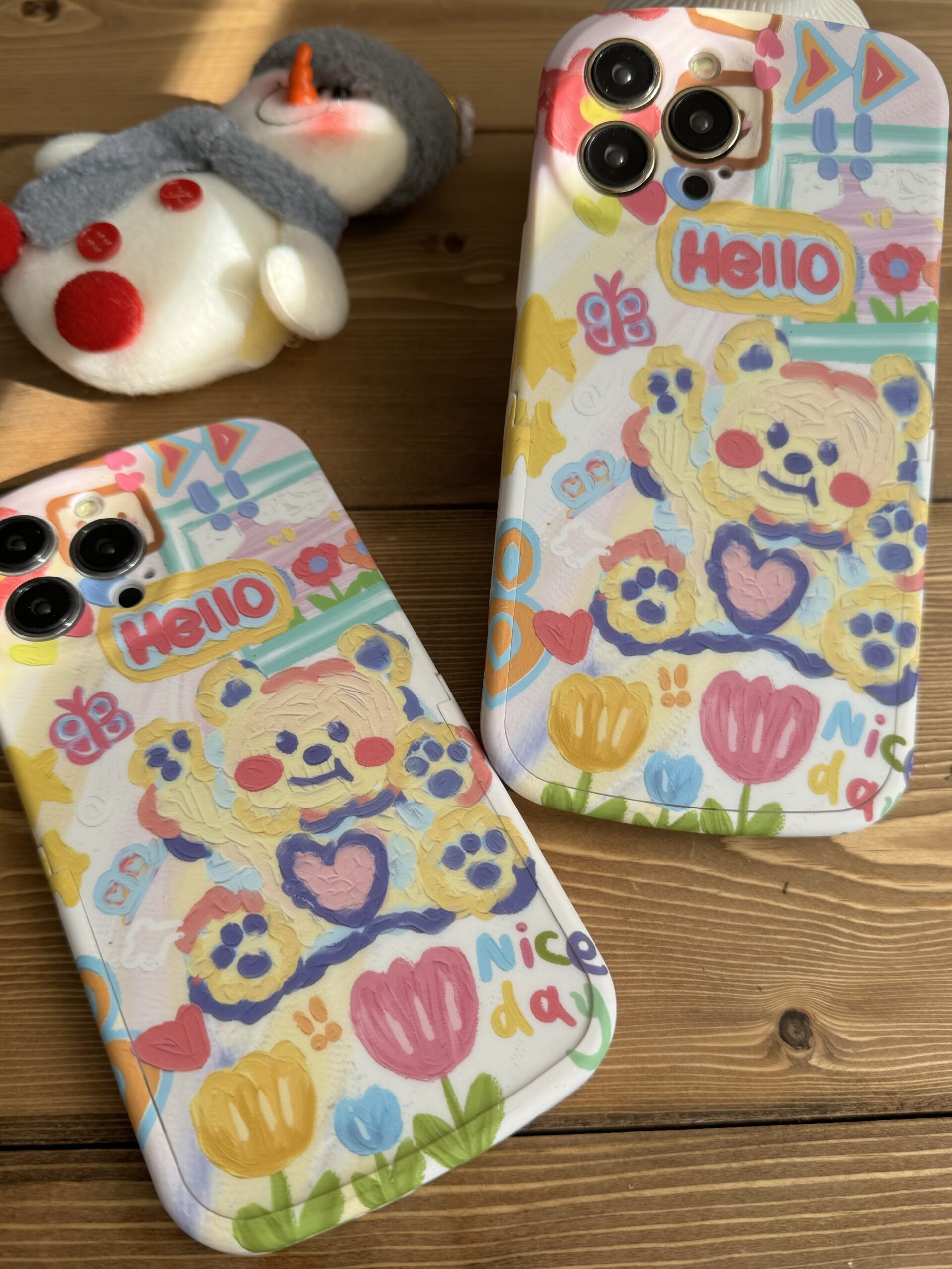 قاب موبایل آیفون خرس نقاشی آبرنگی پایه استند دار