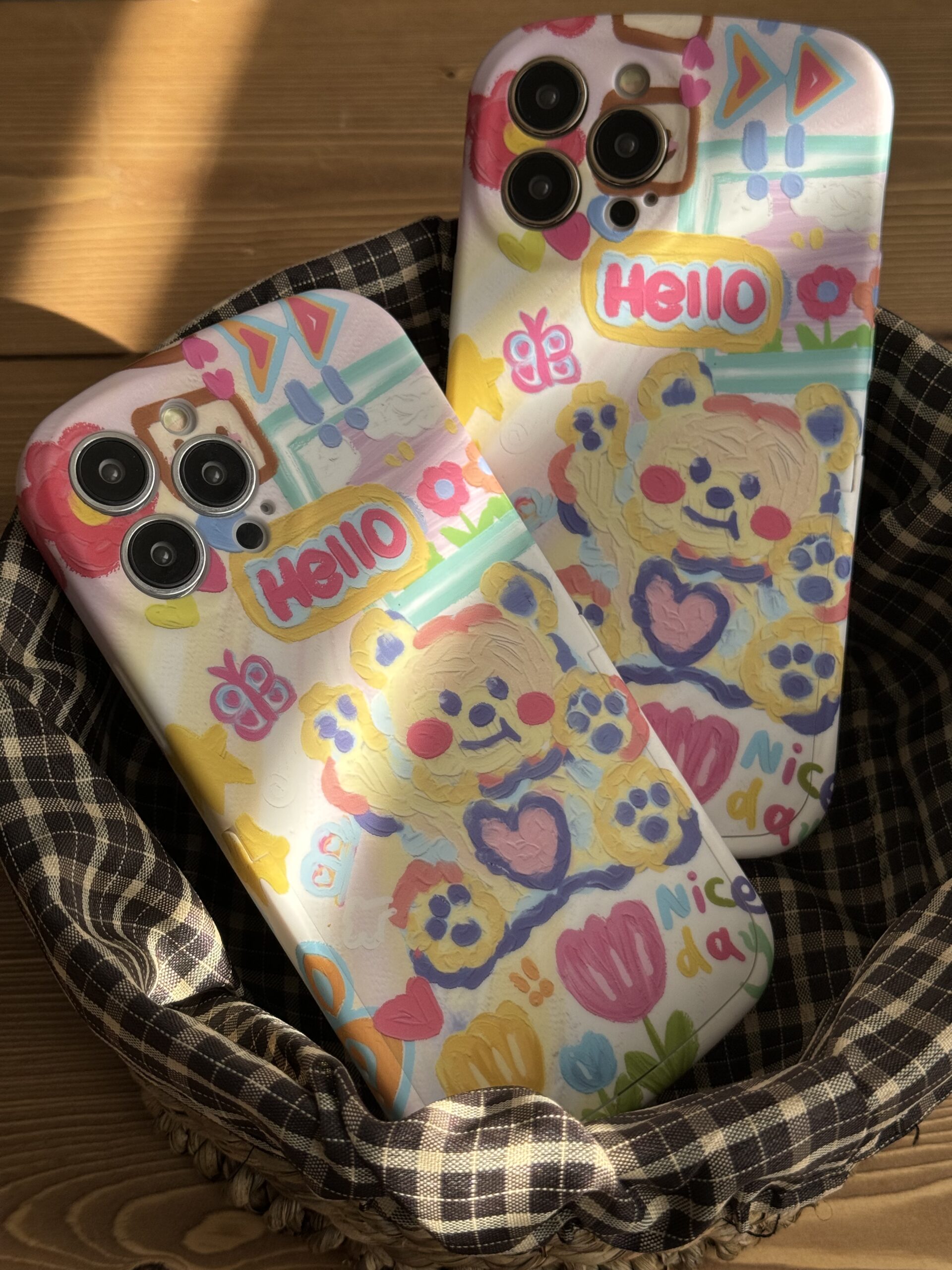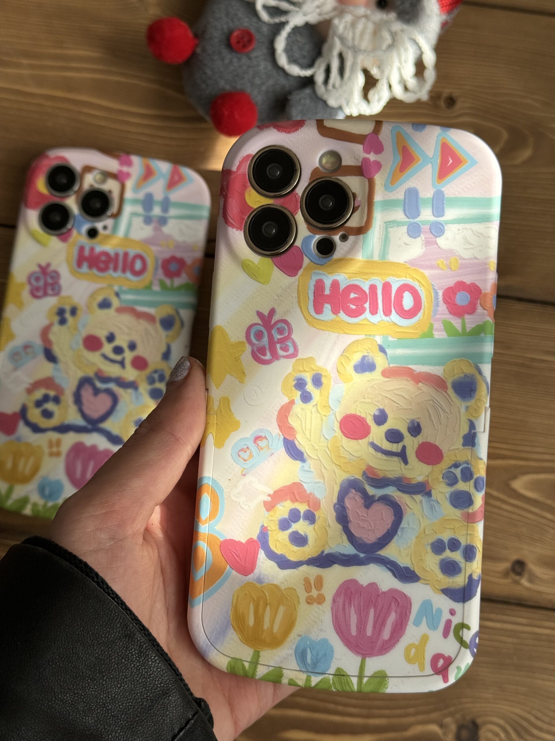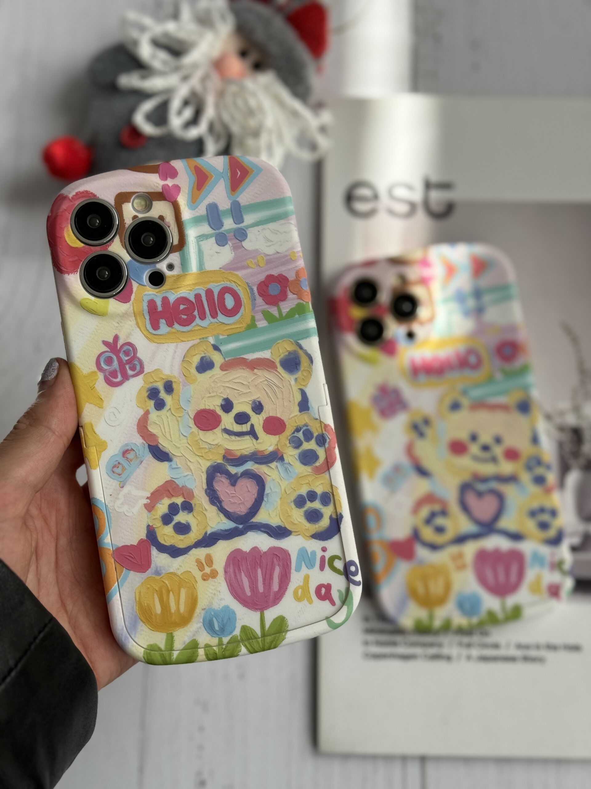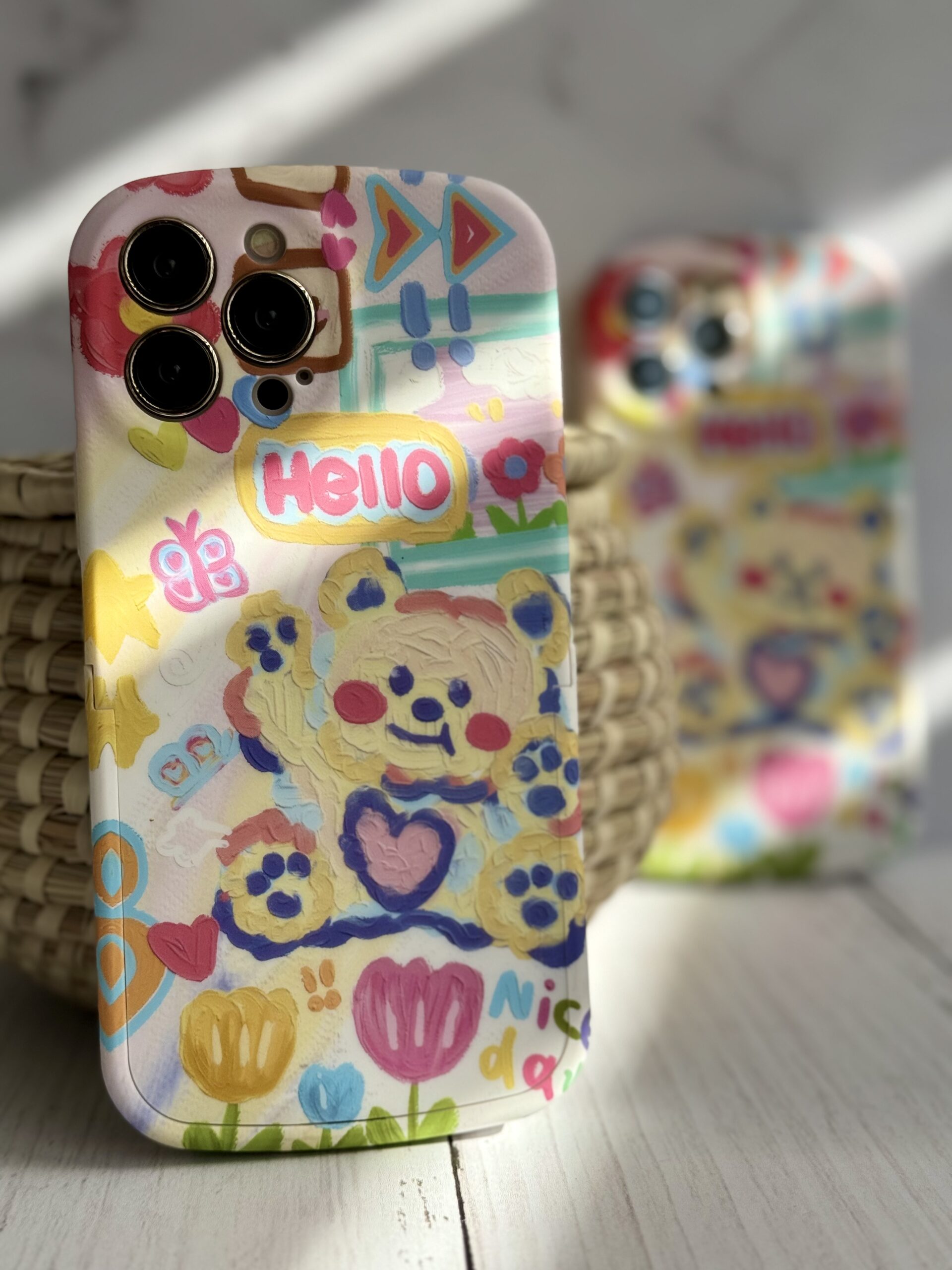 قاب موبایل آیفون خرس نقاشی آبرنگی پایه استند دار
