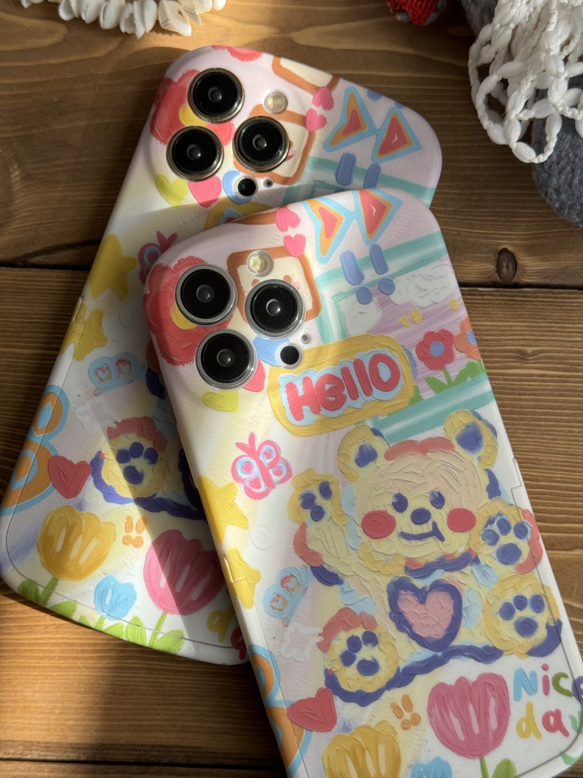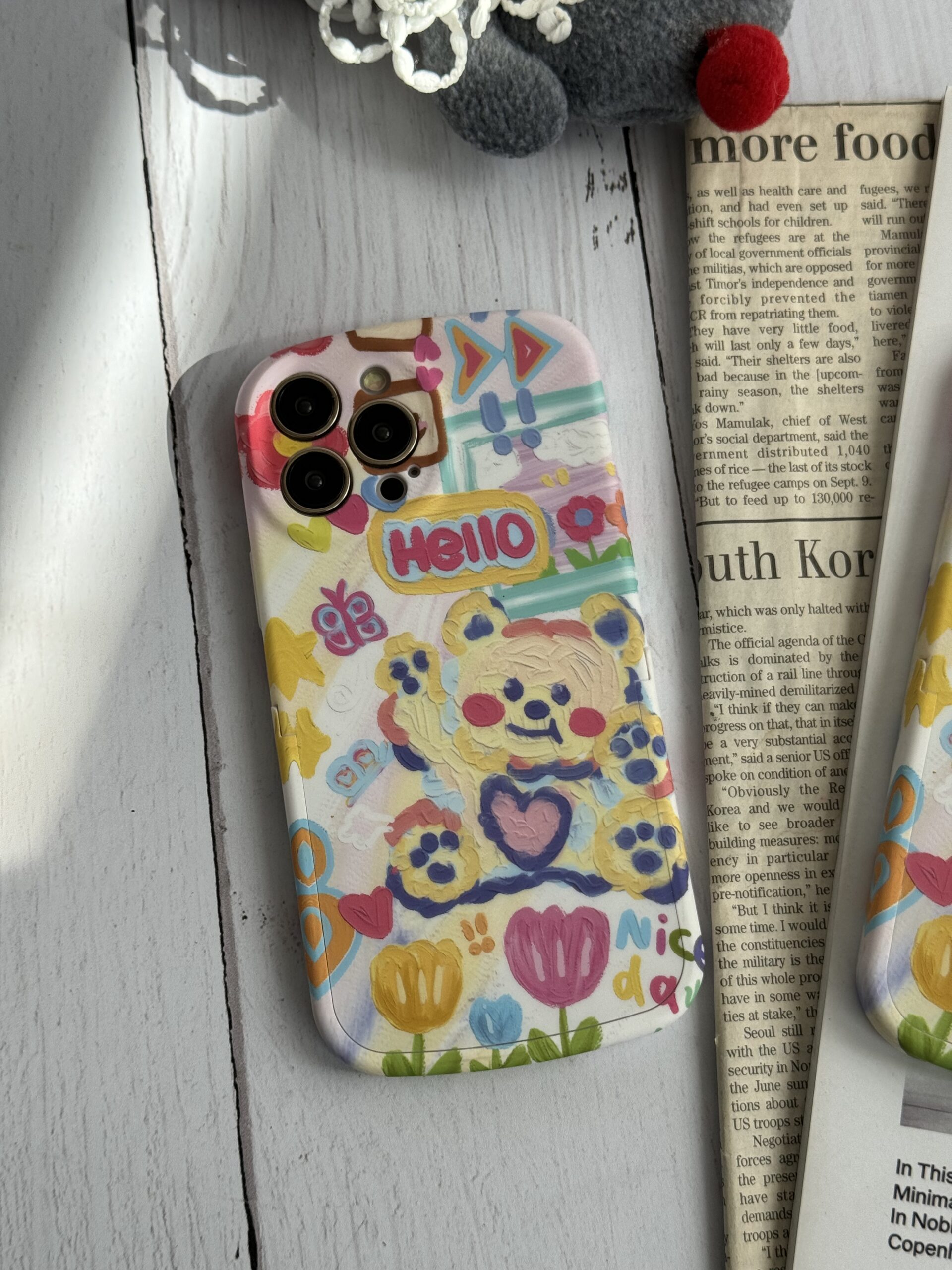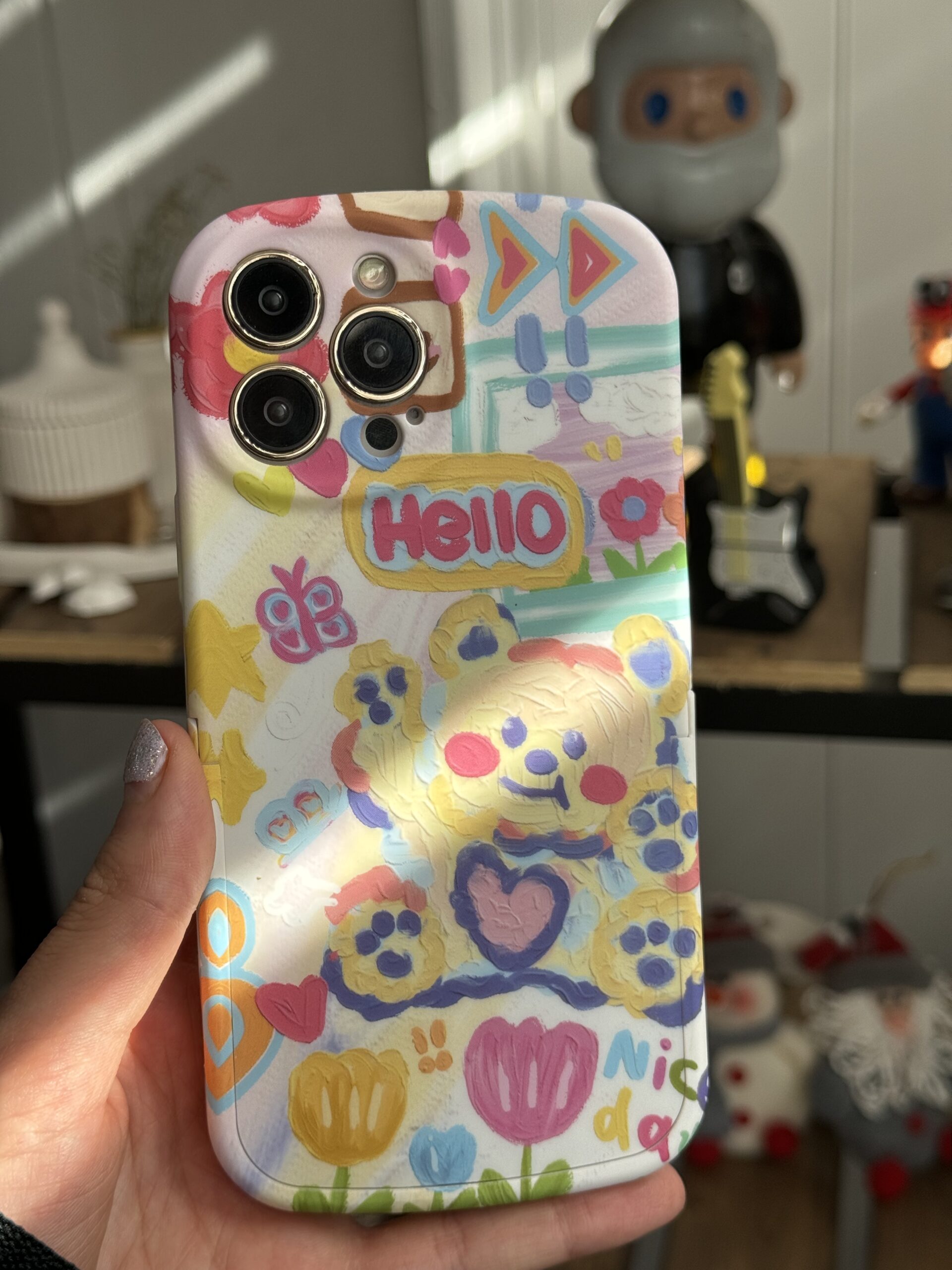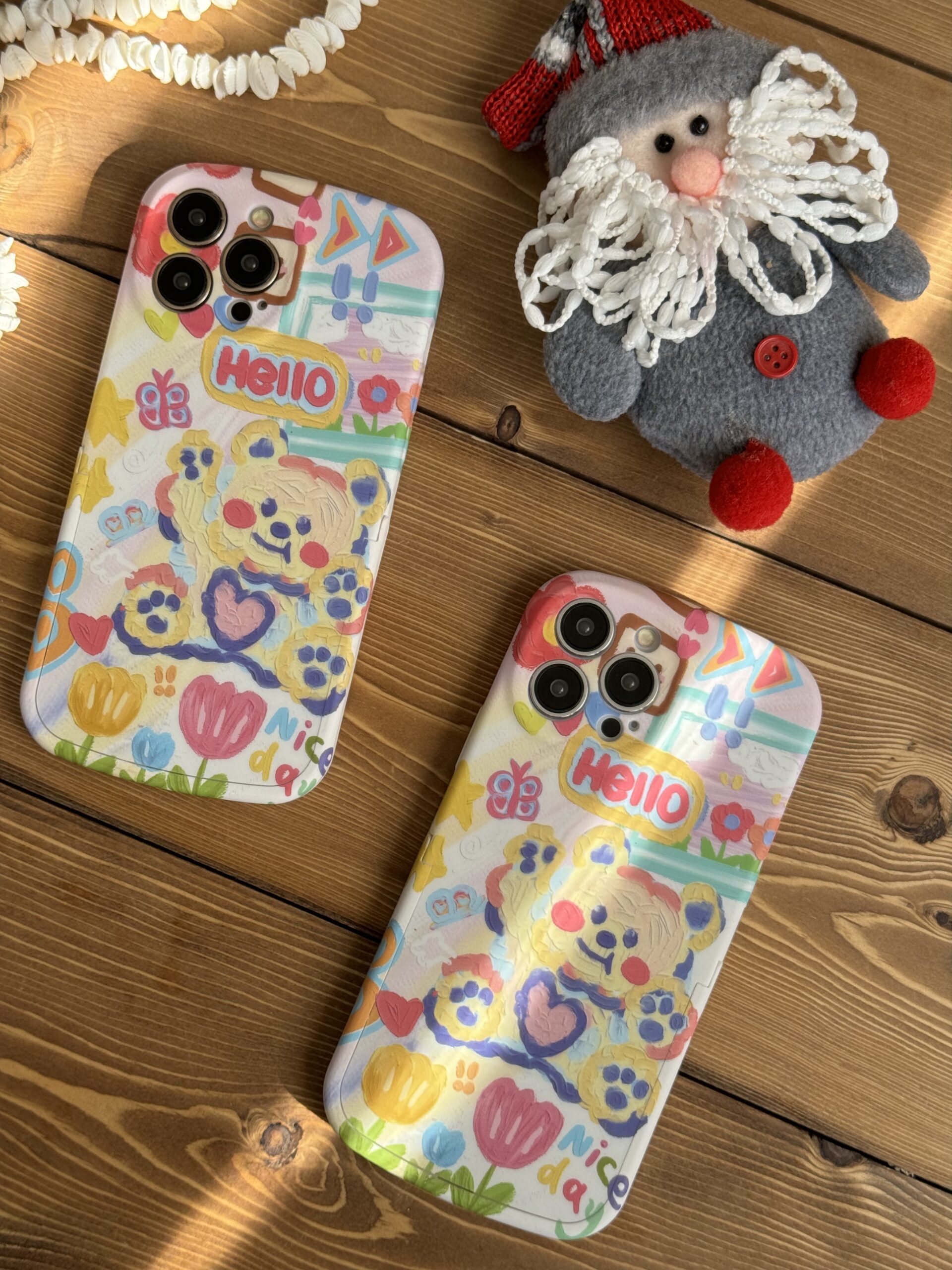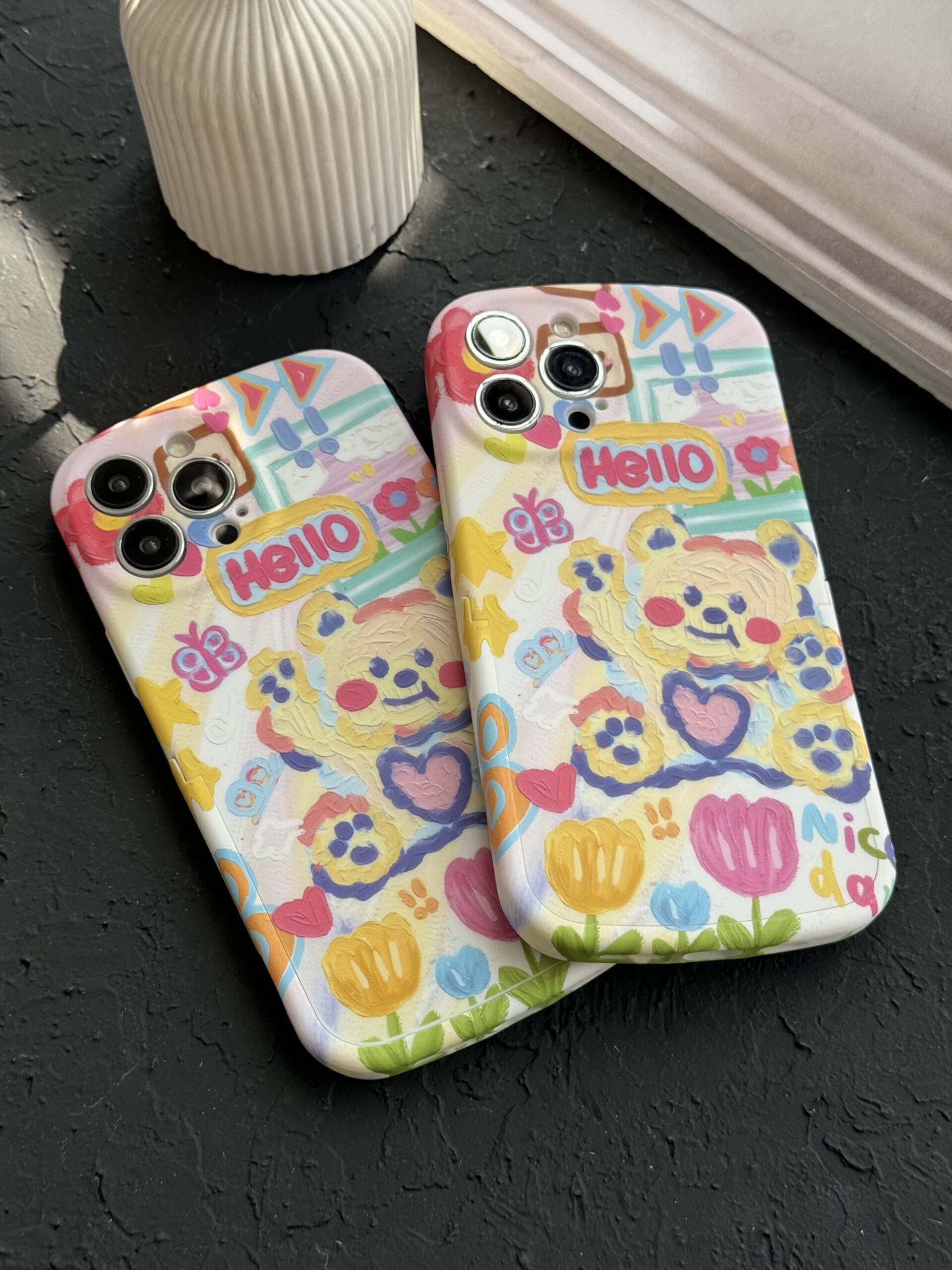 قاب موبایل آیفون خرس نقاشی آبرنگی پایه استند دار