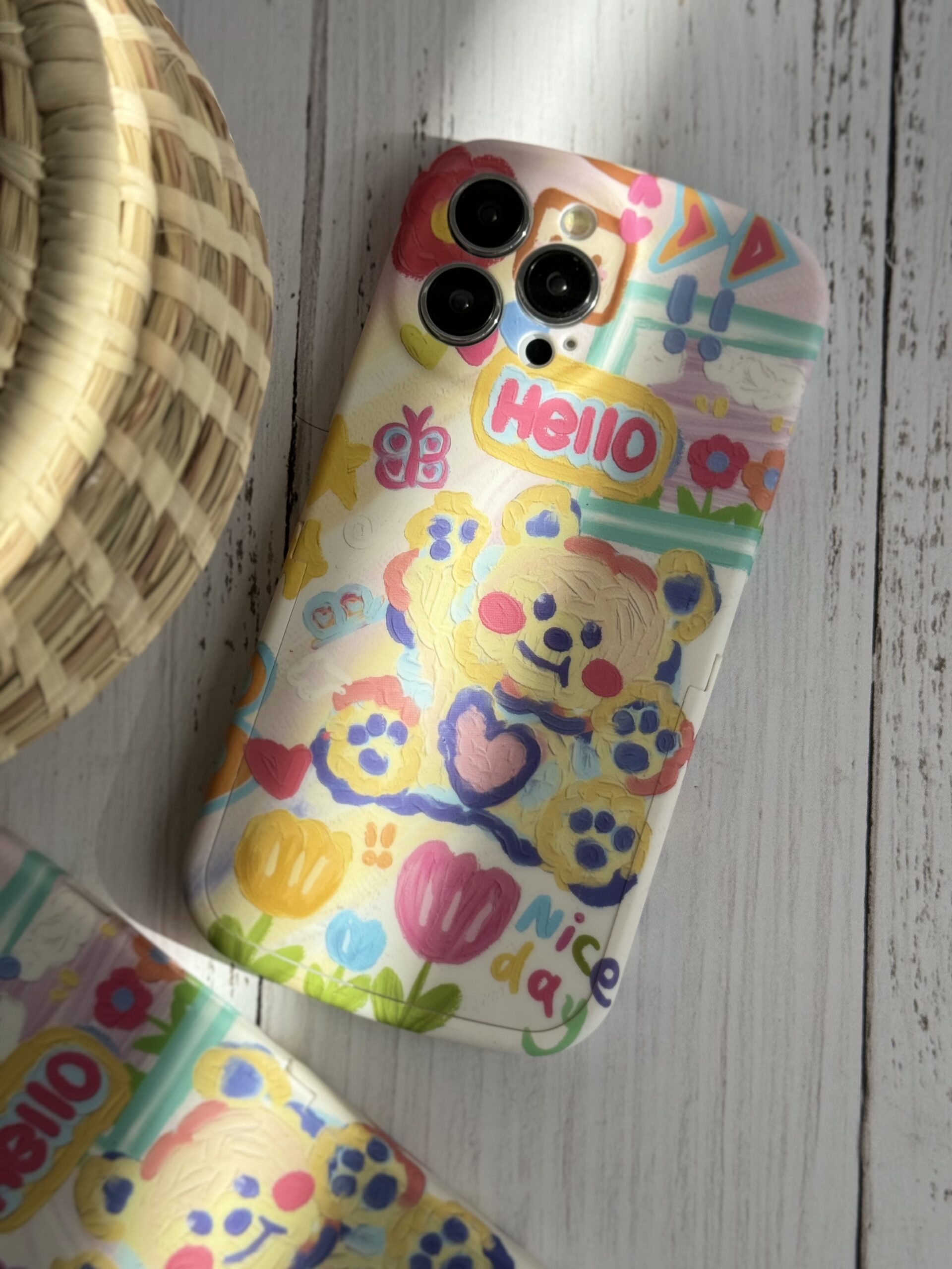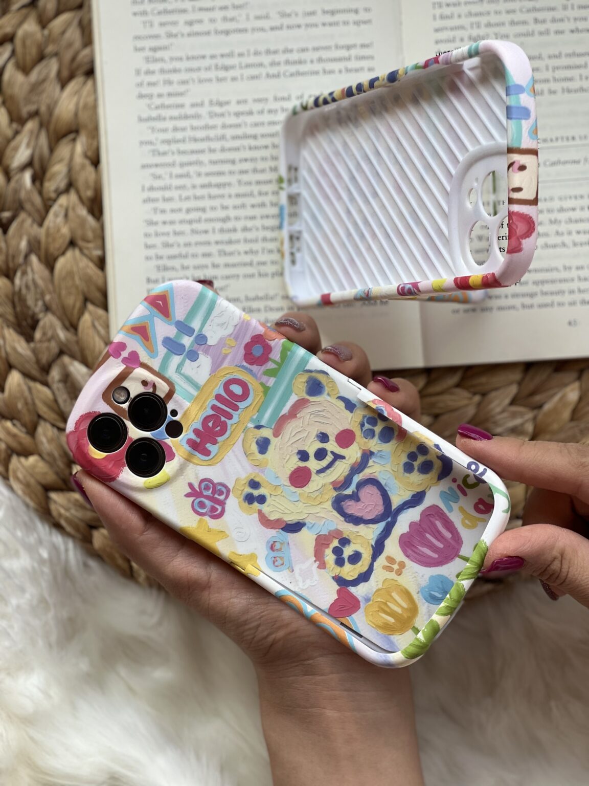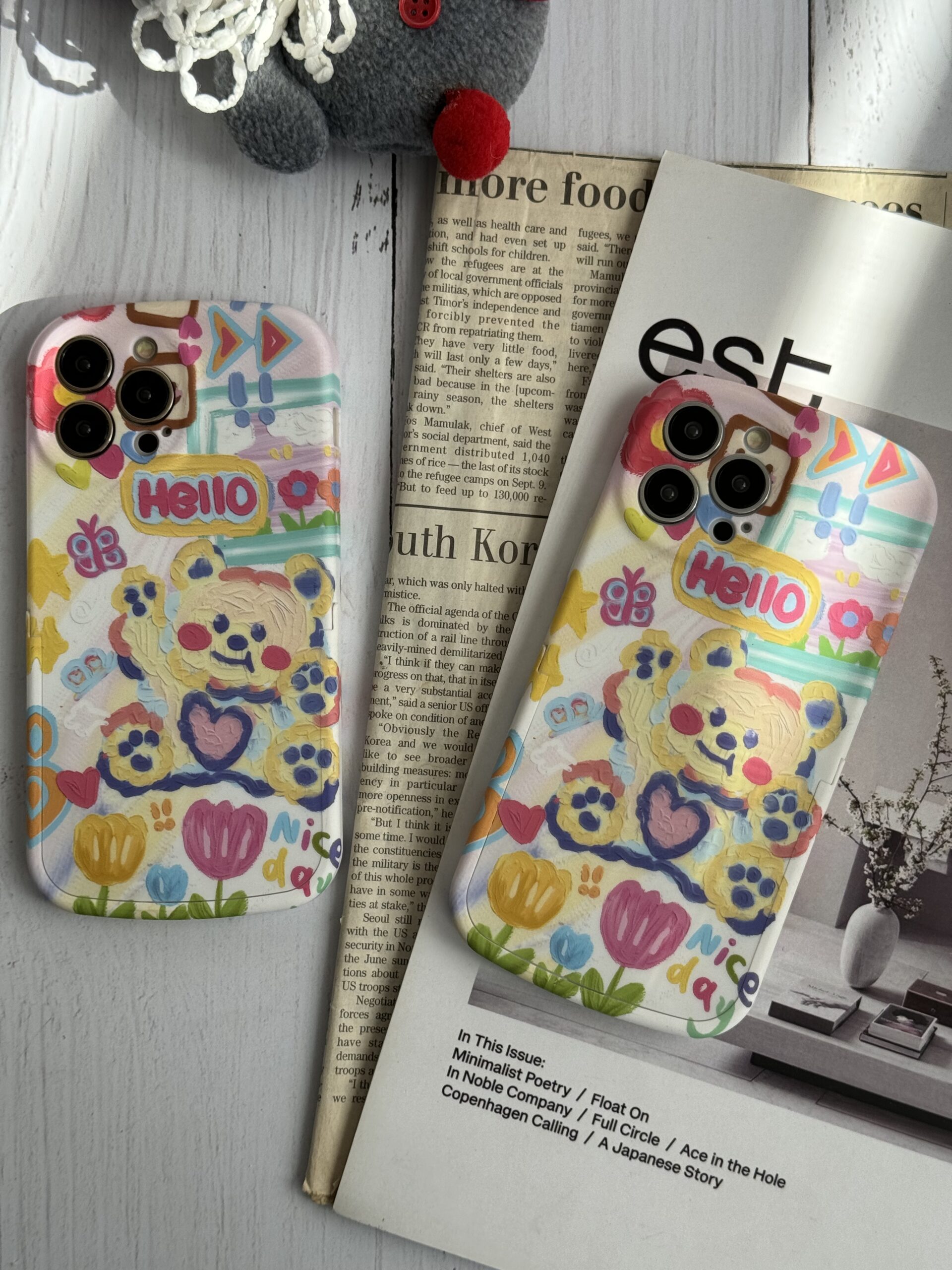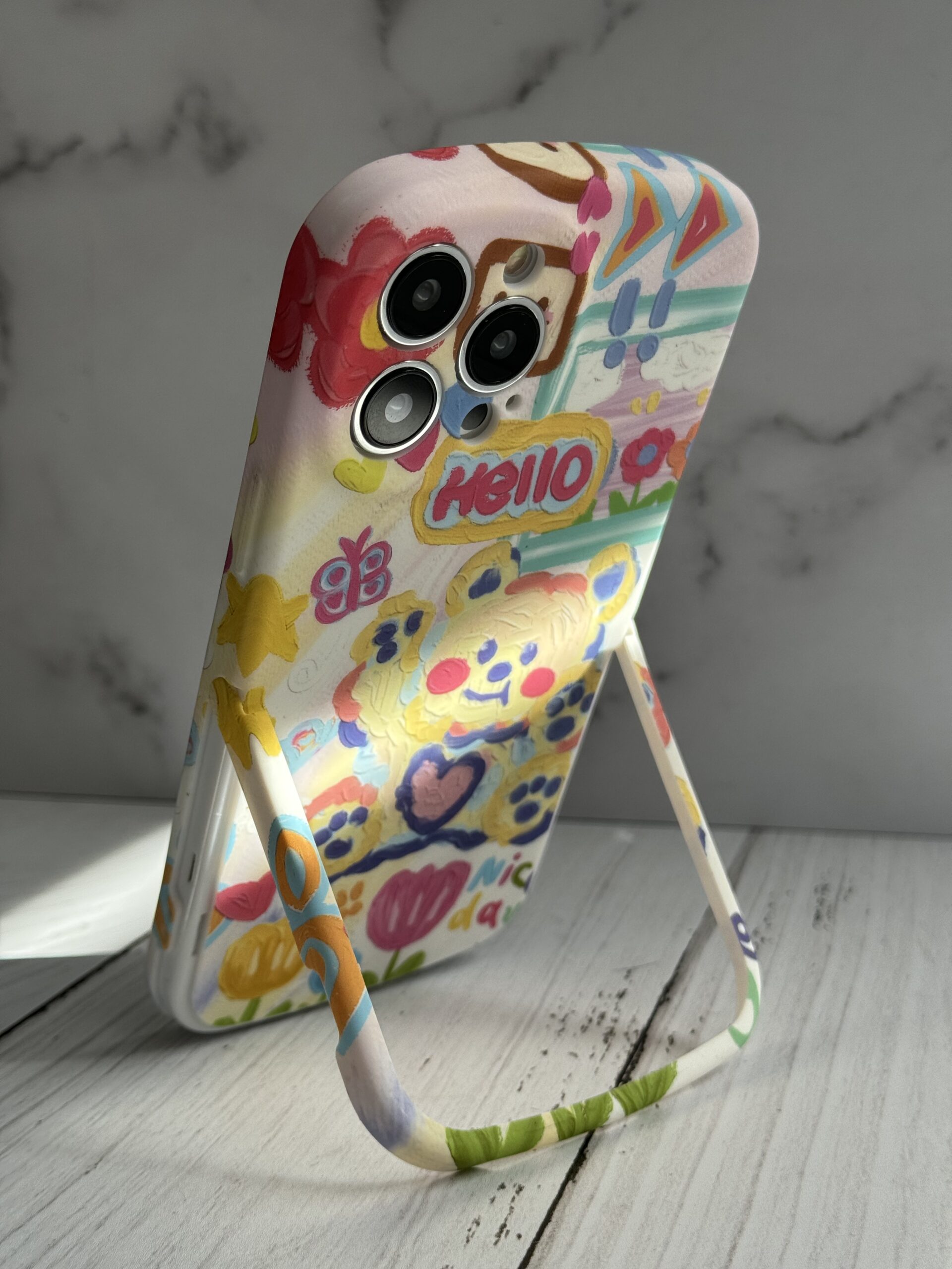 قاب موبایل آیفون خرس نقاشی آبرنگی پایه استند دار