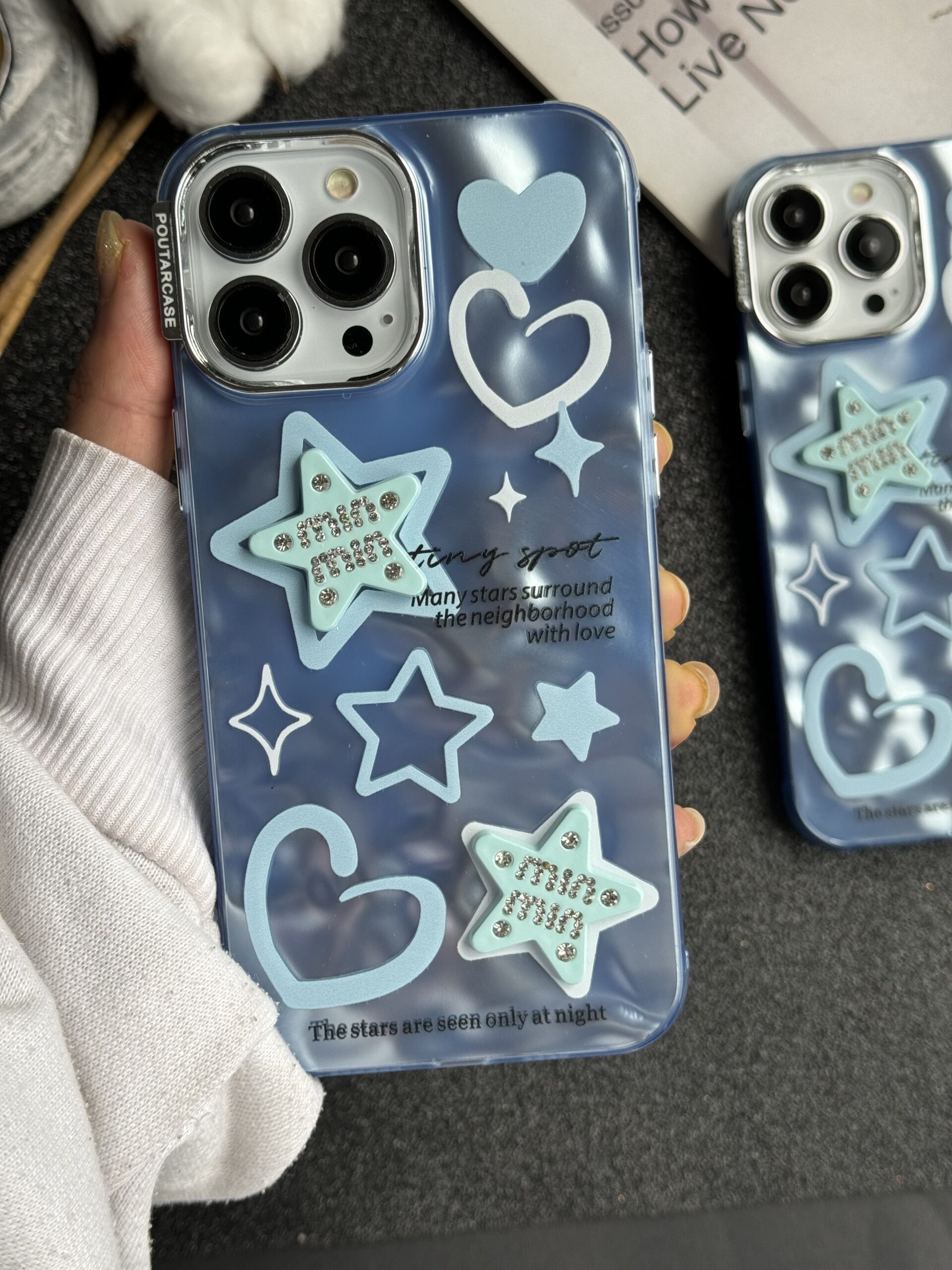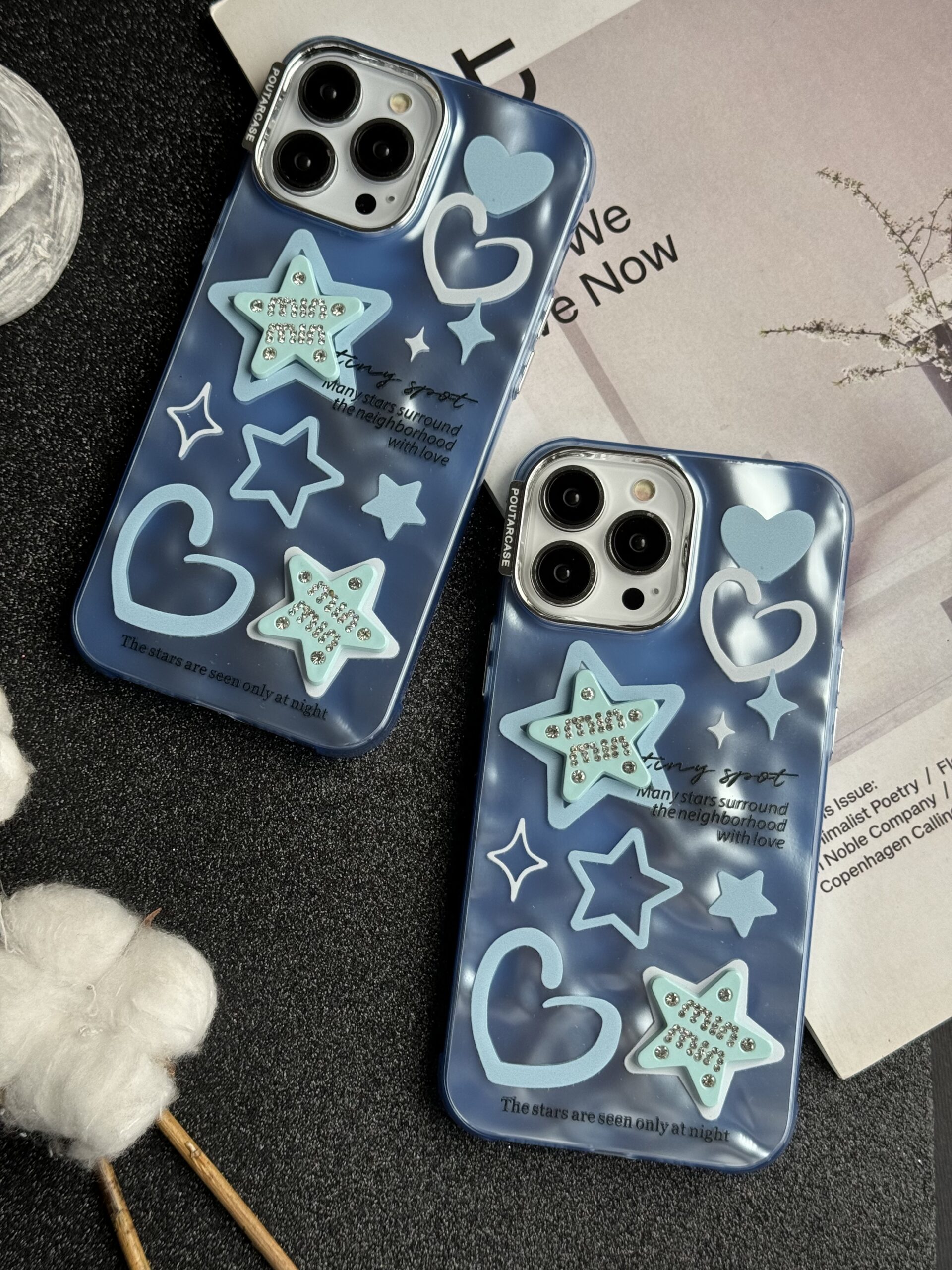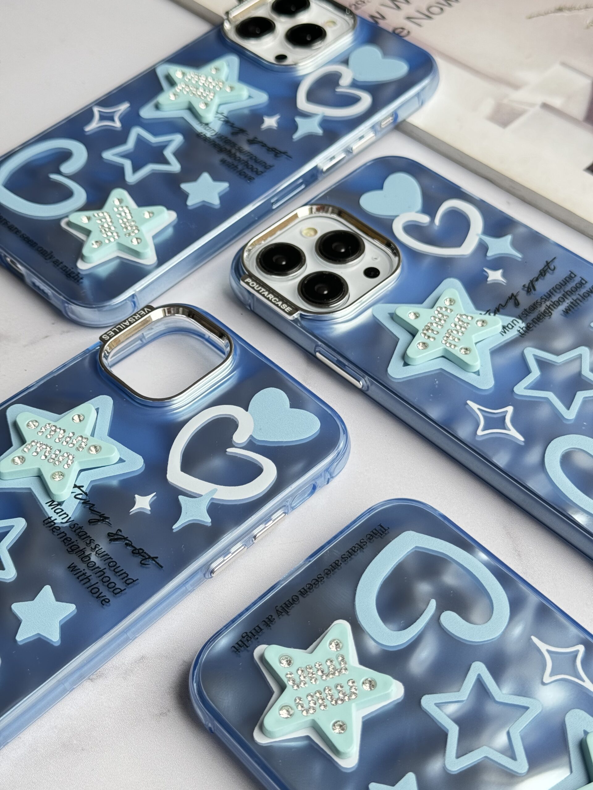 قاب موبایل آیفون ستاره آبی برجسته نگین دار