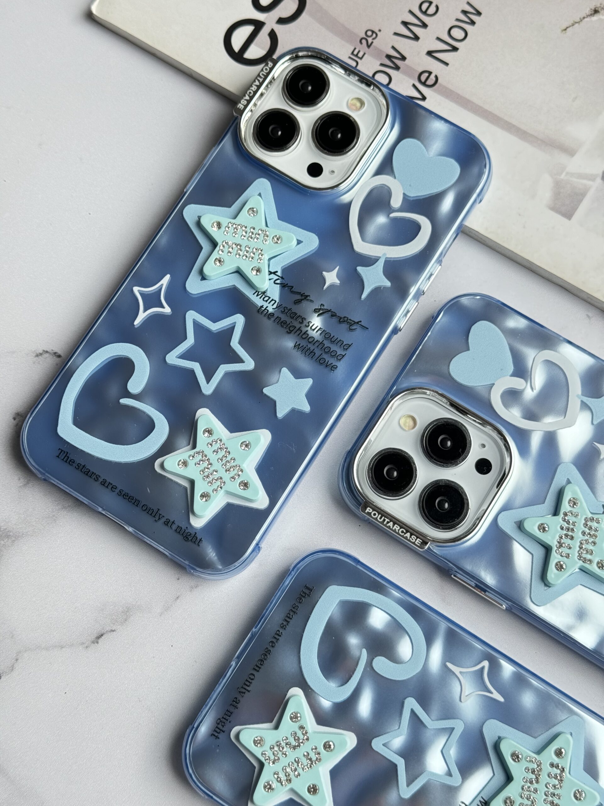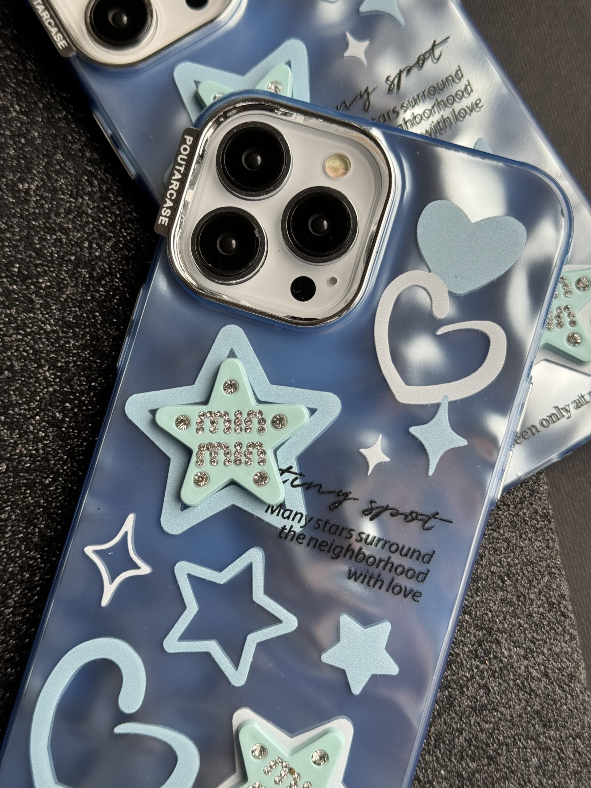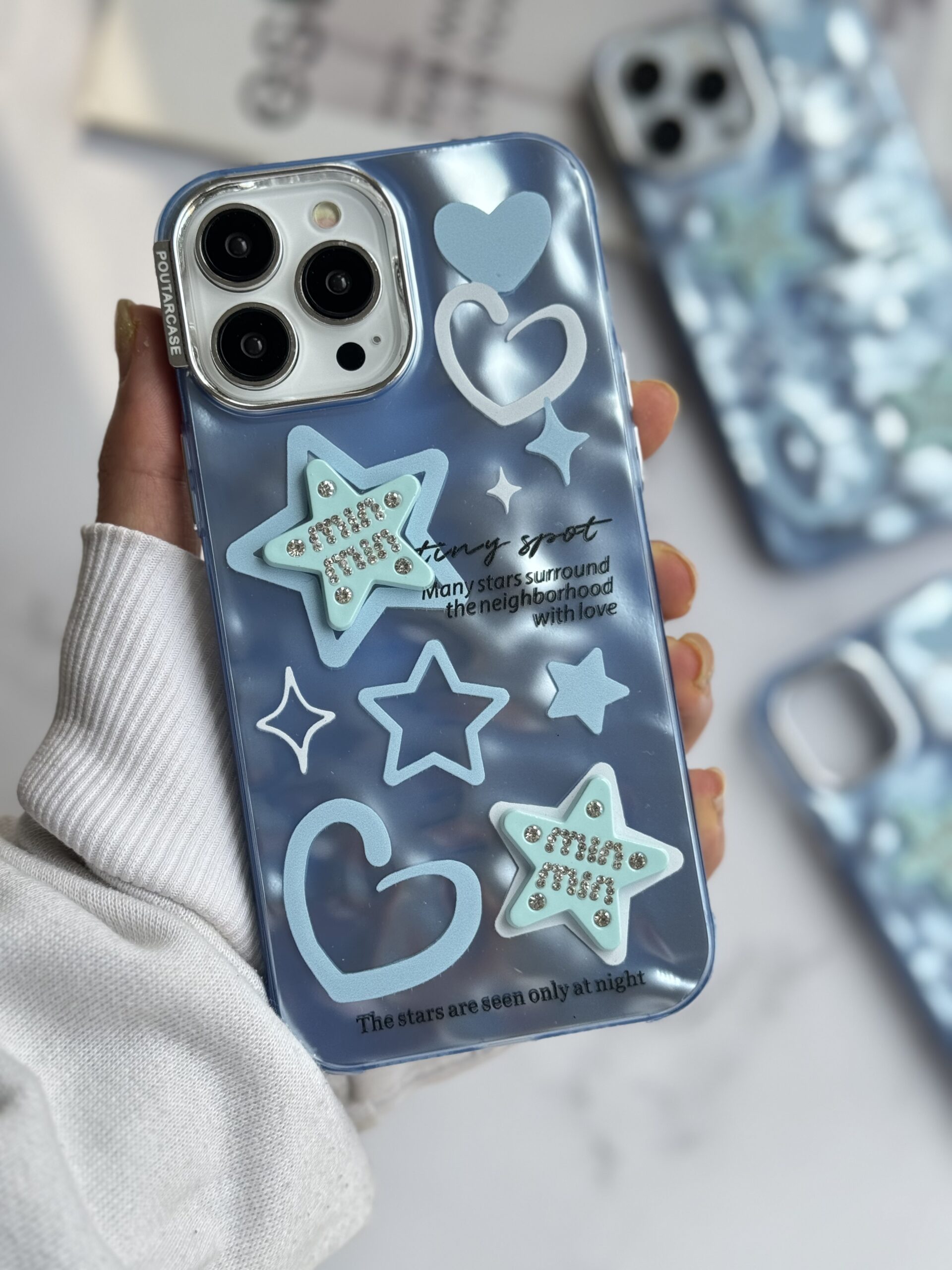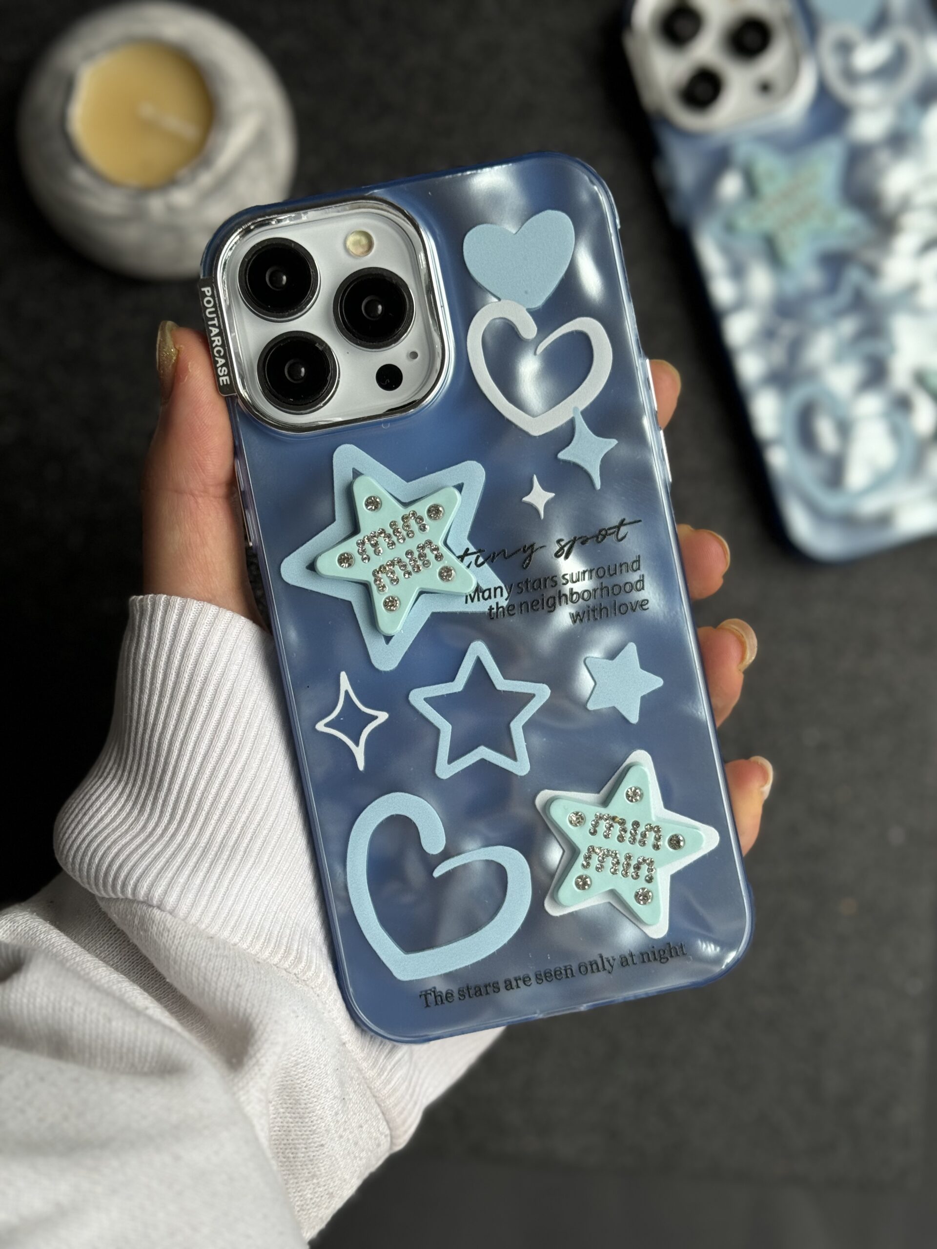 قاب موبایل آیفون ستاره آبی برجسته نگین دار
