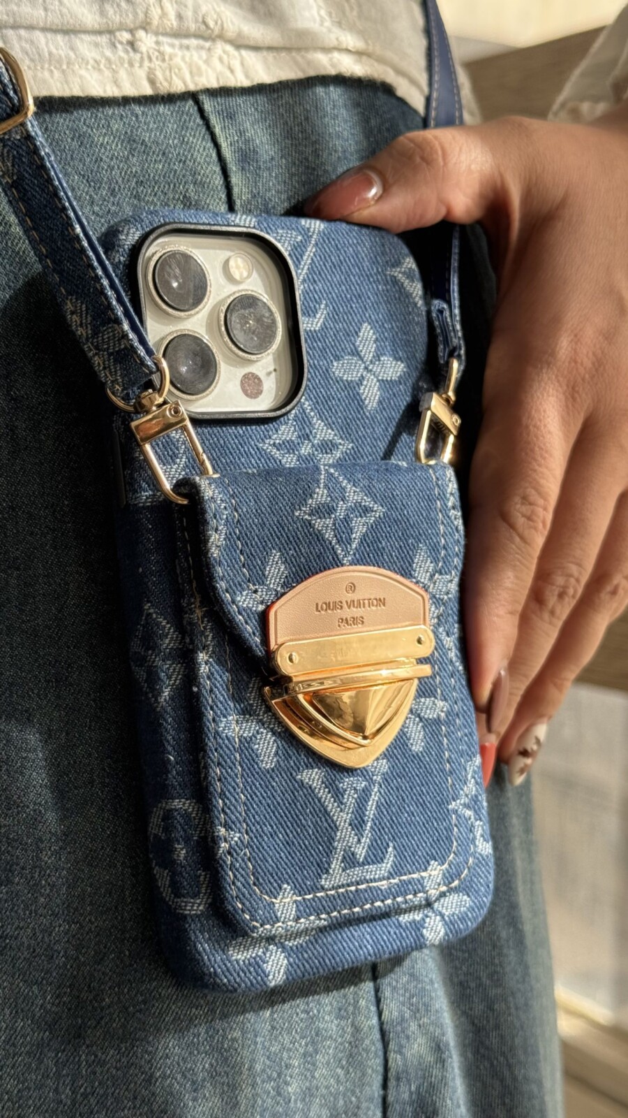 قاب موبایل آیفون لویی ویتون جین استایل جاکارتی دار + بندست یک انتخاب بینظیر برای کسانی است که به دنبال ظاهری خاص و لوکس برای گوشی آیفون خود هستند. طراحی این قاب الهامگرفته از برند مطرح Louis Vuitton است و با پارچه جین آبیرنگ و دوخت ظریف، ظاهری مدرن و شیک به گوشی شما میبخشد.