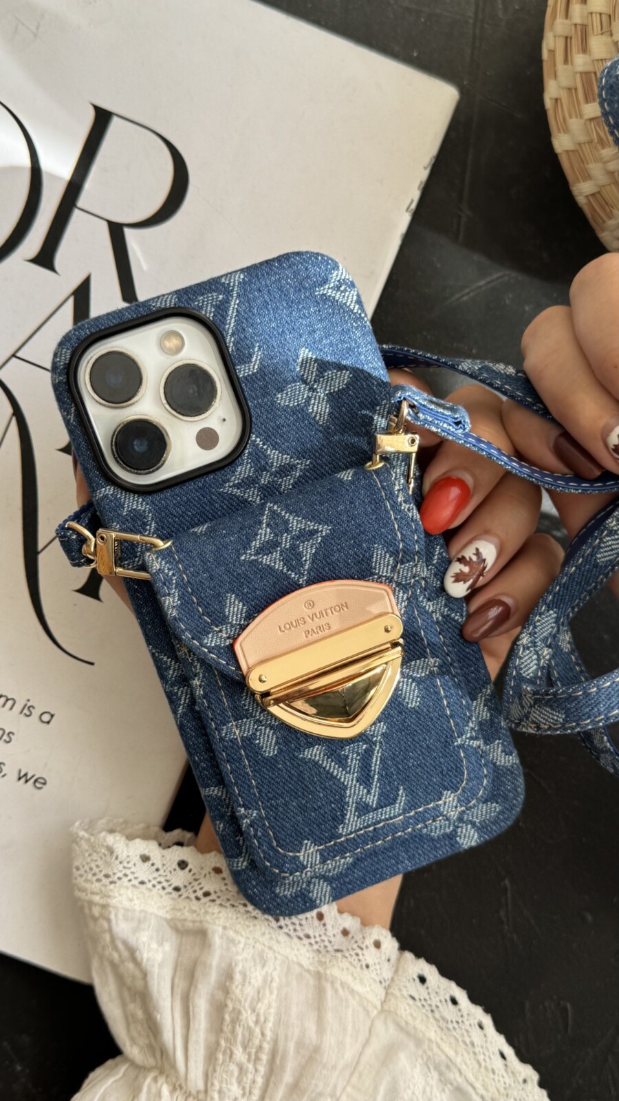 قاب موبایل آیفون لویی ویتون جین استایل جاکارتی دار + بندست