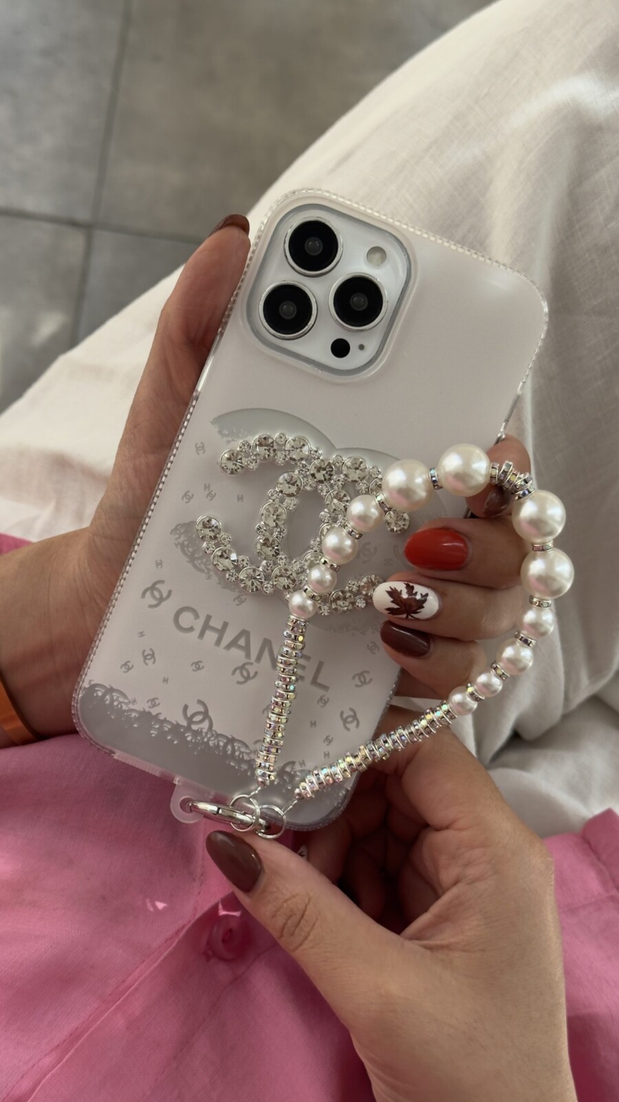 یکی از ویژگیهای خاص این محصول، بندست مروارید همراه آن است که علاوه بر کاربردی بودن (برای نگهداری راحتتر گوشی)، جلوهای زنانه و جذاب به استایل شما میدهد. مرواریدهای درخشان در کنار قطعات براق، زیبایی این ست را دوچندان میکنند و آن را به یک اکسسوری کامل تبدیل کردهاند.