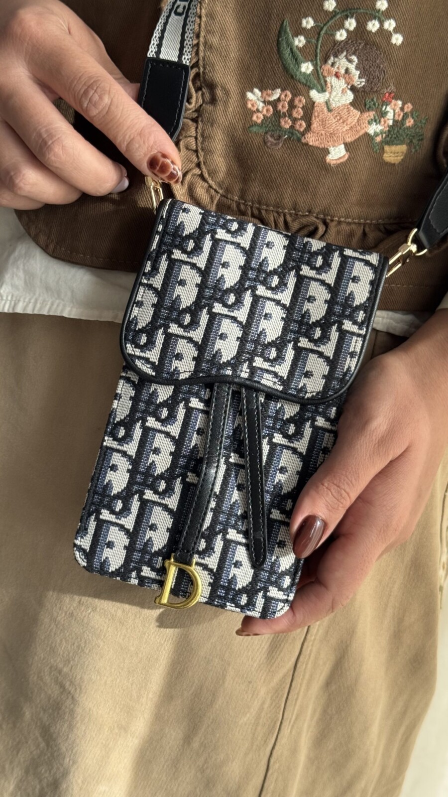 بند این کیف از جنس پارچه ضخیم با نوشتهی Dior طراحی شده است که علاوه بر زیبایی، دوام بسیار بالایی دارد. قابلیت تنظیم طول بند به شما امکان میدهد کیف را بهصورت دوشی، کراسبادی یا شانهای استفاده کنید.
