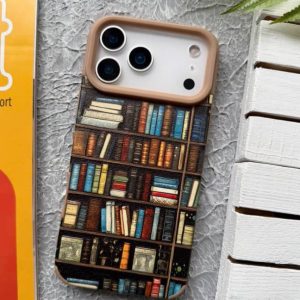 قاب موبایل آیفون مخملی طرح کتابخانه مشکی