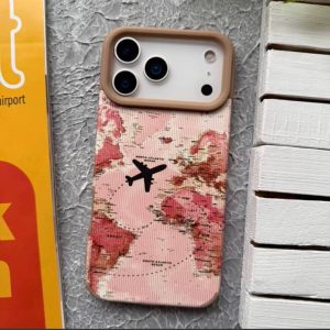 قاب موبایل آیفون مخملی طرح پرواز هواپیما صورتی